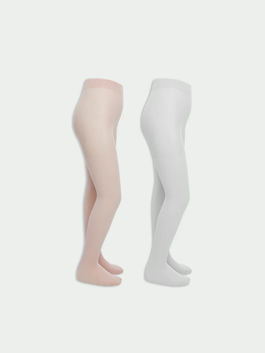 Kız çocuk 2’li külotlu çorap seti. Külotlu çoraplar, düz bir tasarıma sahiptir.