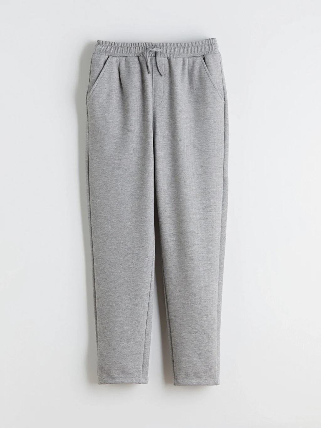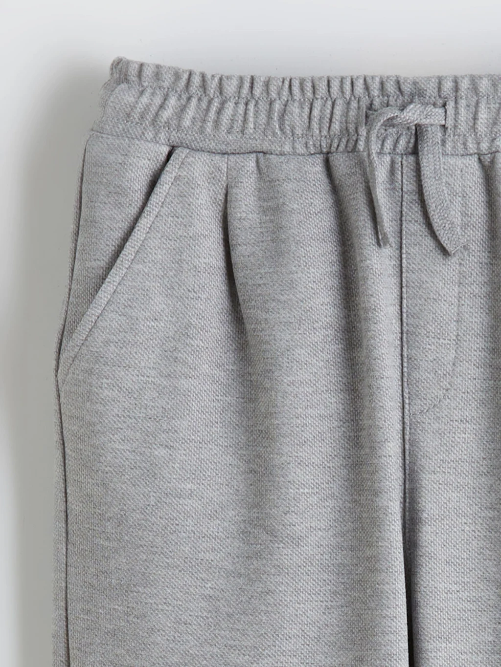 Standart kalıp erkek çocuk pantolon, poliviskon kumaştan üretilmiştir. Beli lastikli ve ayarlanabilir bağcıklıdır, yan cepleri bulunur.