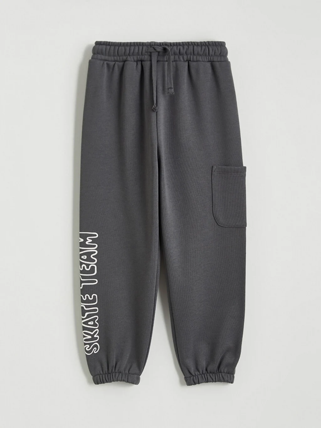 Beli lastikli ve ayarlanabilir bağcıklı erkek çocuk eşofman altı, kalın 3 iplik şardonlu kumaştan üretilmiştir. Kargo cepli, paçası baskılı ve lastiklidir.