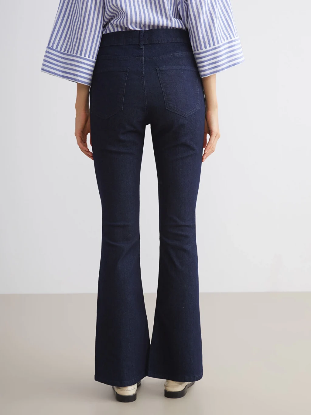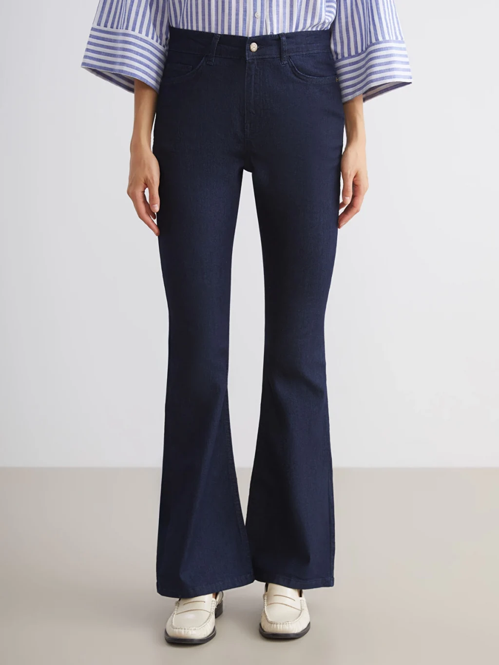 Flare fit; bel ve basene oturan, dizden paçaya doğru genişleyerek inen modern klasik bir kesimdir. 70'lerin modasını günümüze taşıyan tasarıma sahiptir.