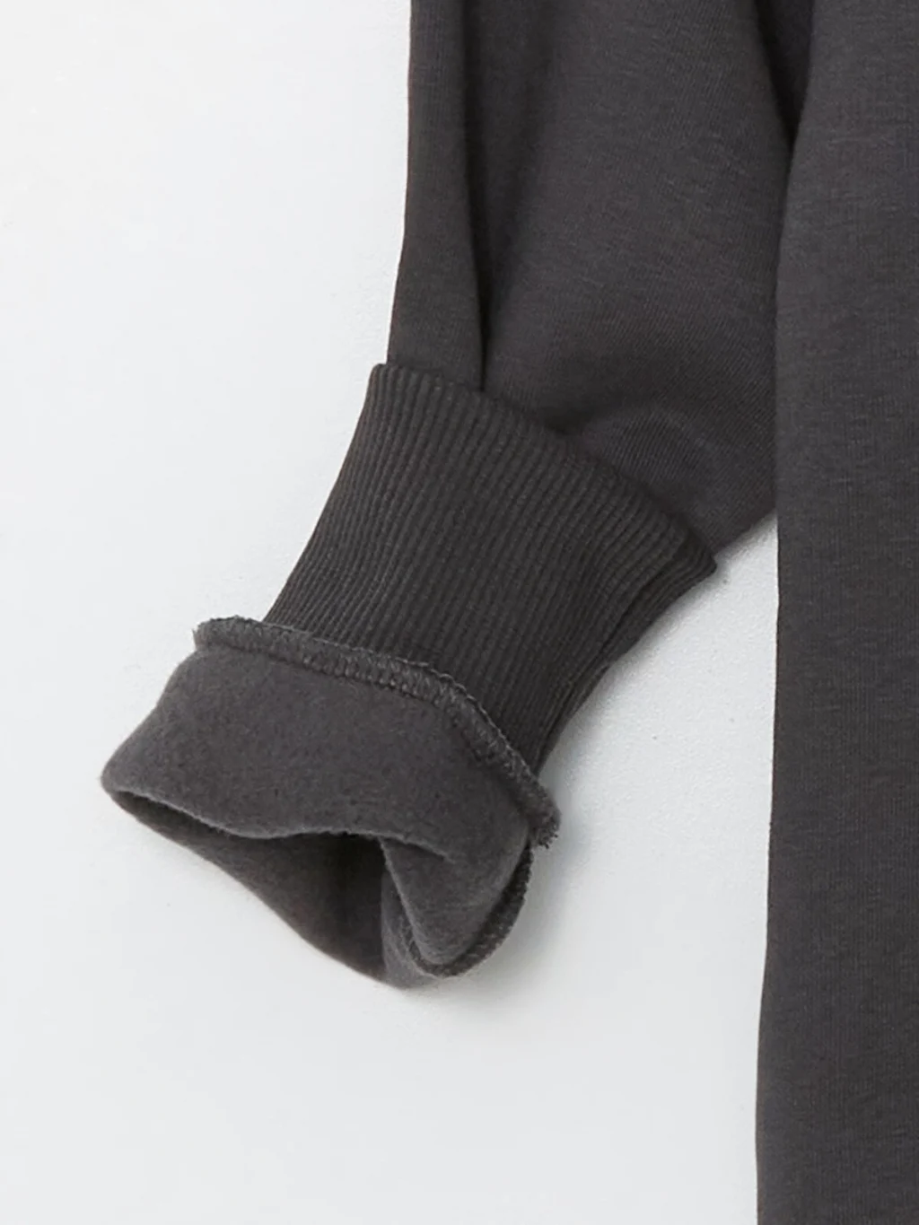 kapüşonlu ve baskılı erkek çocuk sweatshirt, kalın 3 iplik şardonlu kumaştan üretilmiştir. Uzun kolludur, kol ve etek ucu ribanalıdır.