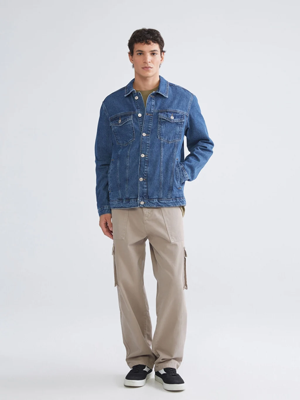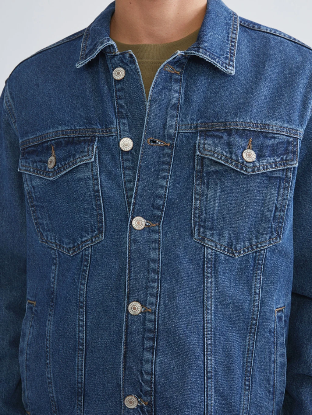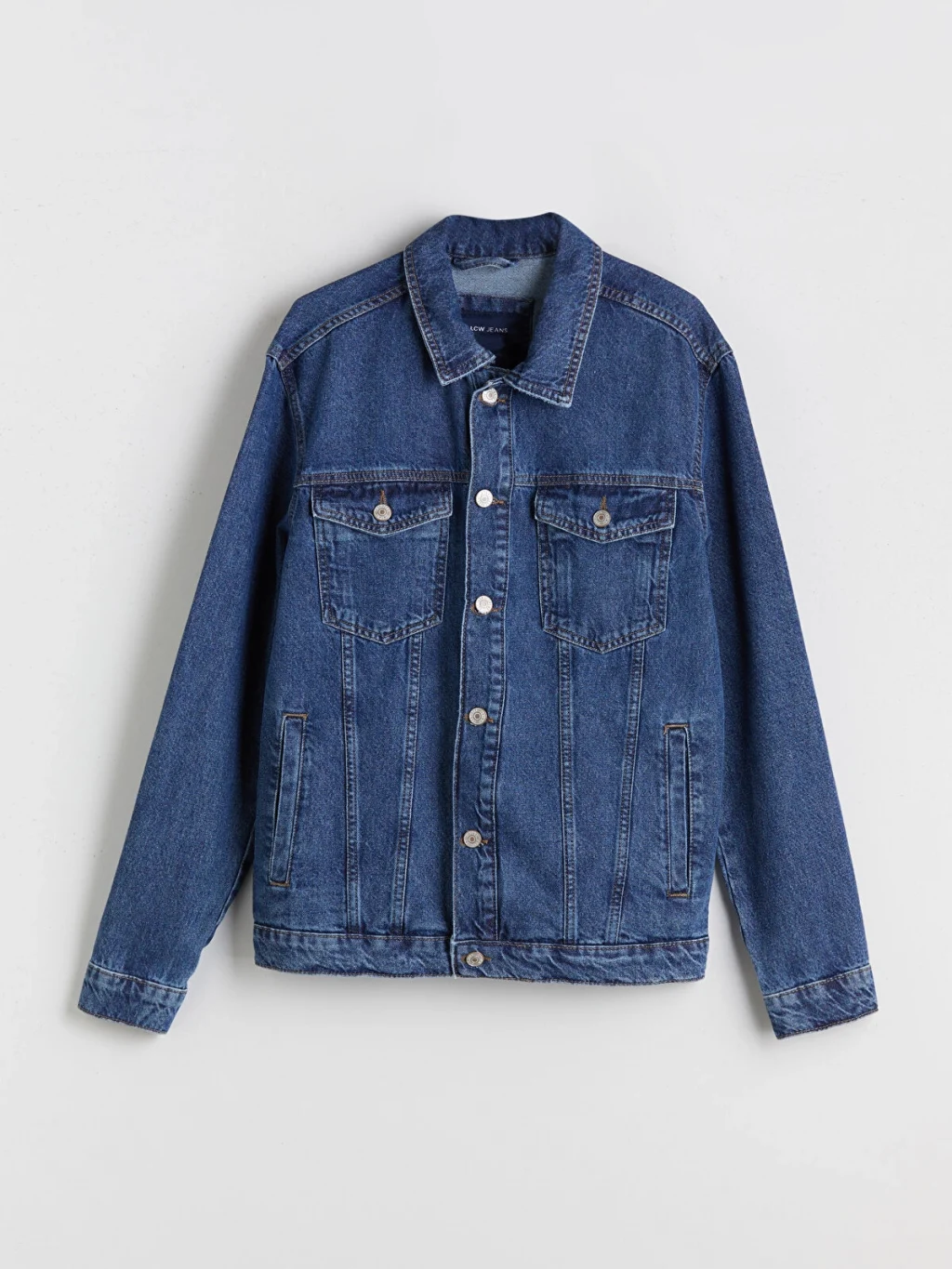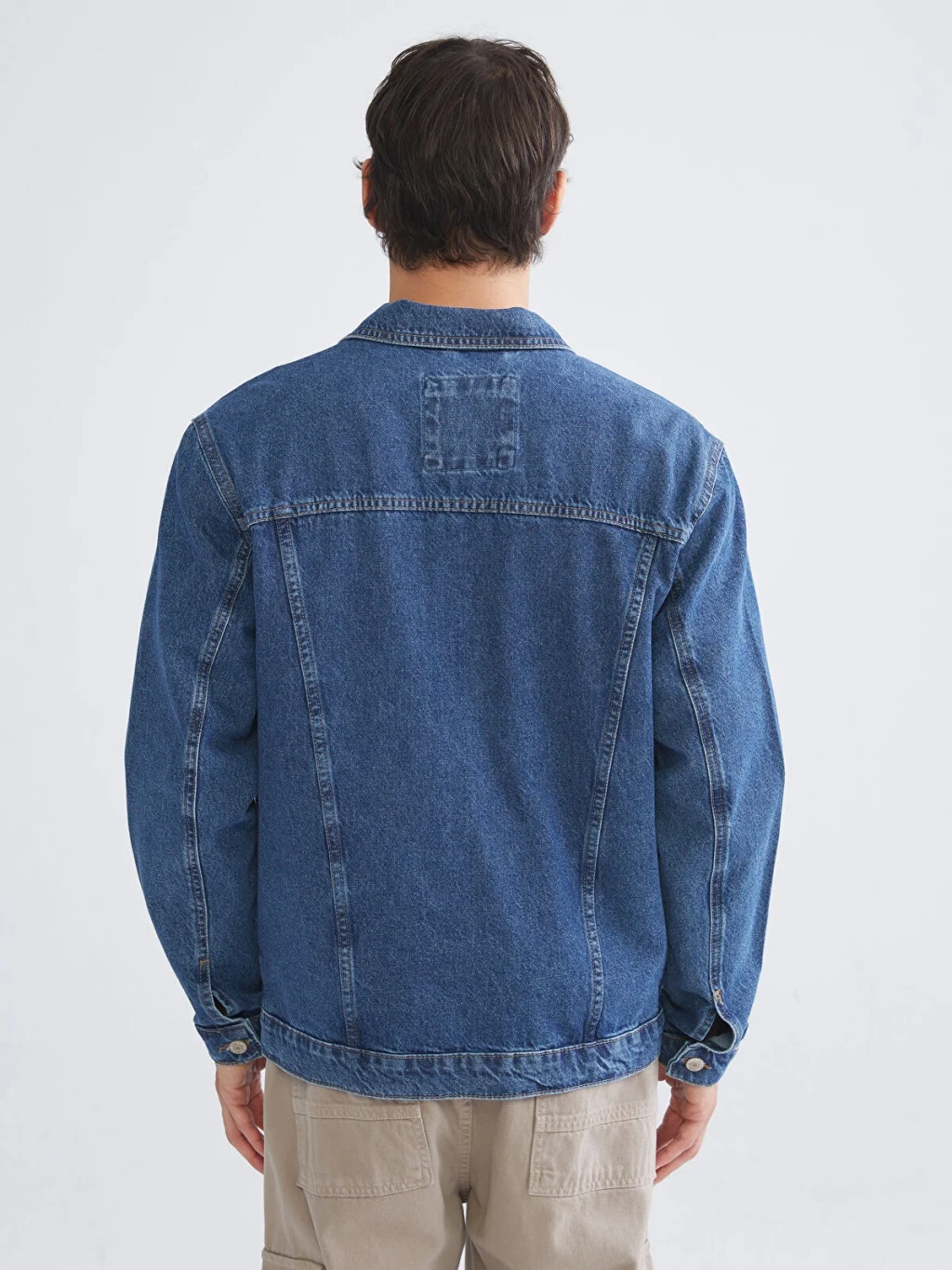 Standart kalıp tasarıma sahip erkek ceket, pamuklu jean kumaştan üretilmiştir.