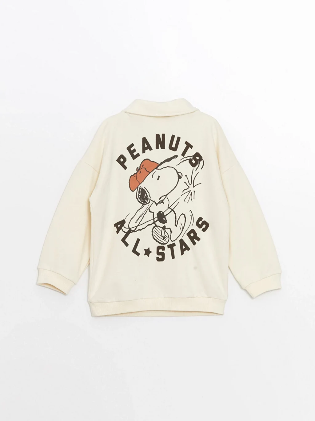 Polo yaka uzun kollu Snoopy baskılı erkek bebek sweatshirt, yumuşak ve dayanıklı kumaştan üretilmiştir. Sevimli Snoopy baskıları ve şık polo yaka tasarımı ile bebeğinizin günlük kullanımında hem rahatlık hem de stil sağlar