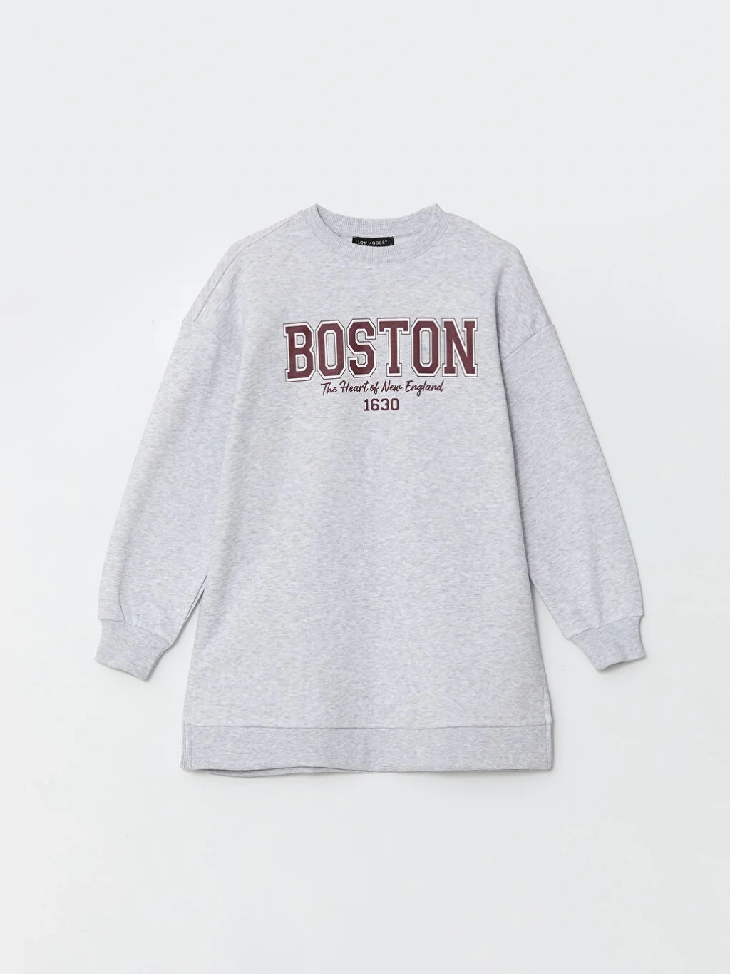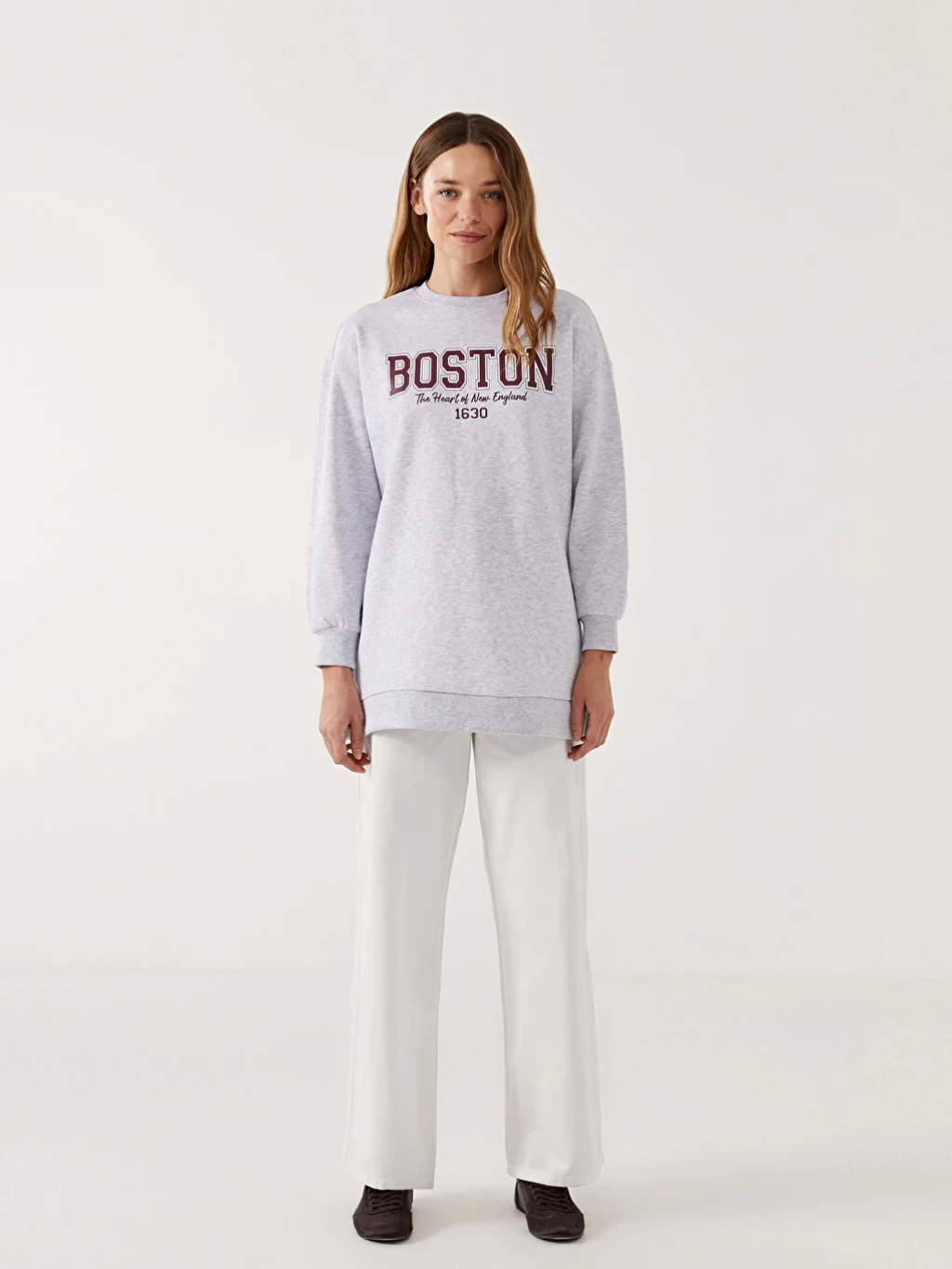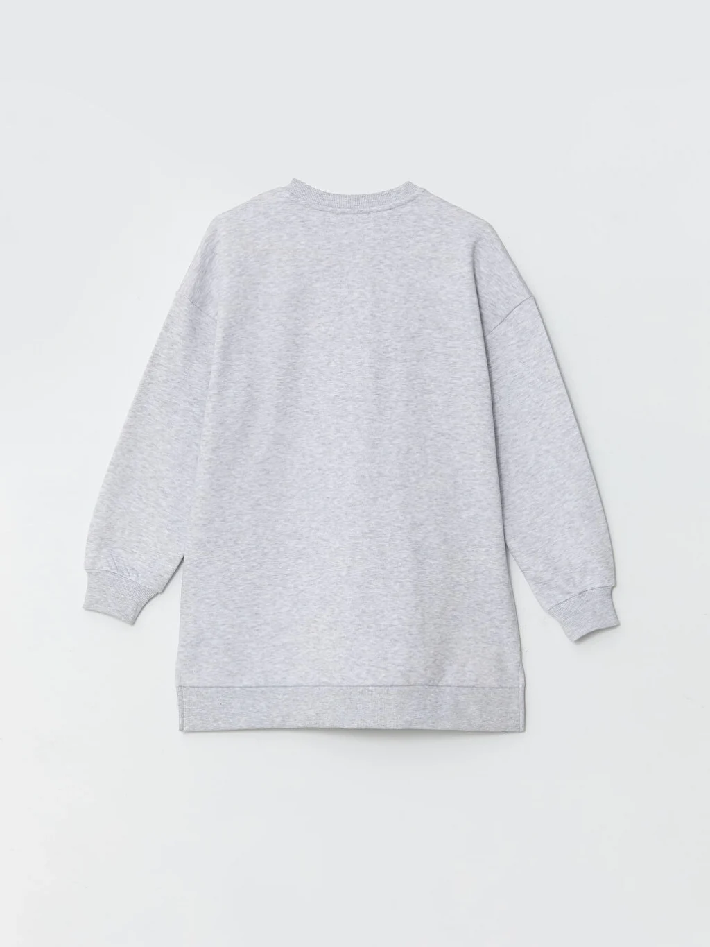 - Bisiklet yaka uzun kollu sweatshirt tunik, içi yumuşak tüylü 3 iplik şardonlu kumaştan üretilmiştir. Baskı detayları ile dikkat çekici bir görünüm sunar. Bilek ve alt kısmındaki ribana detayları sayesinde vücuda tam oturur.