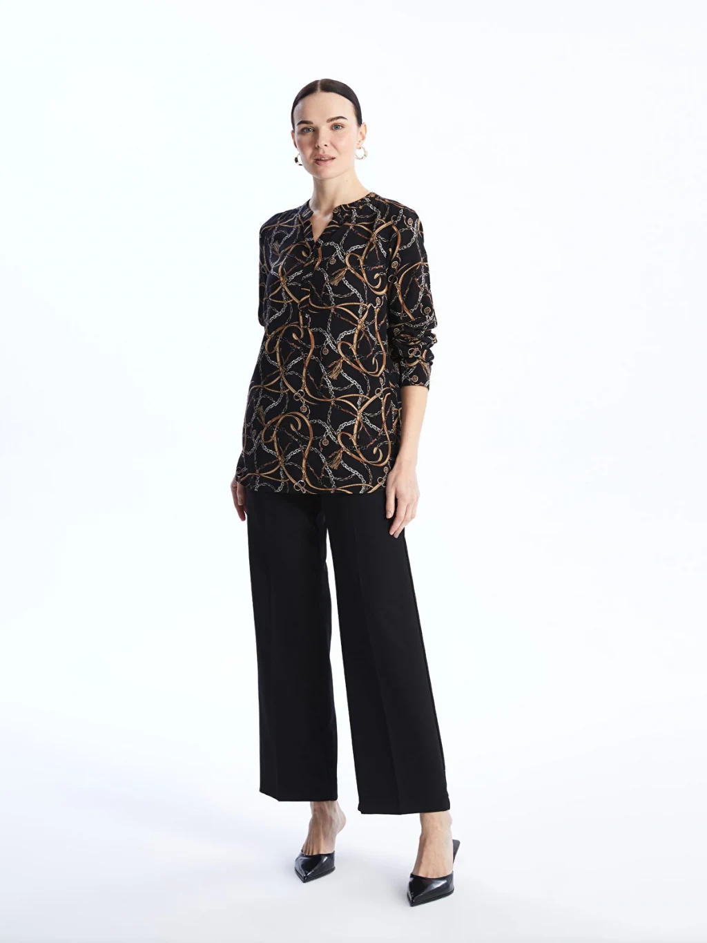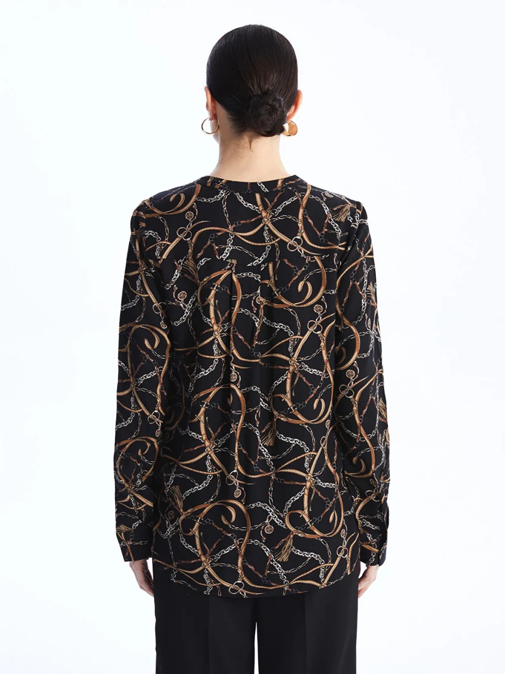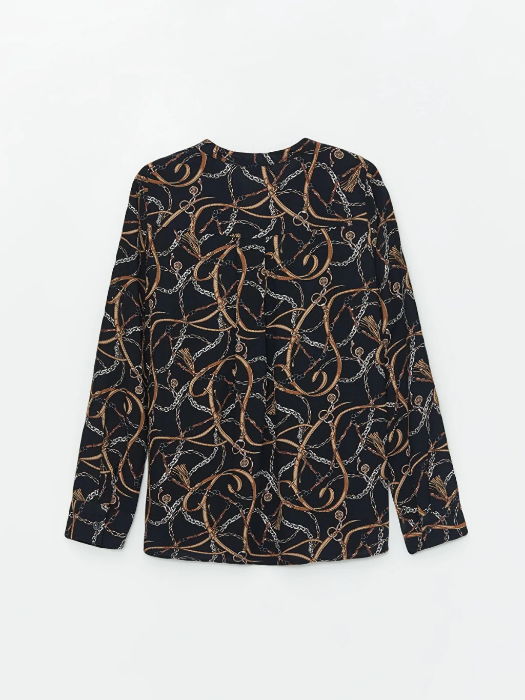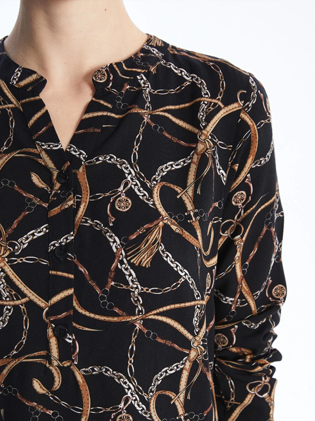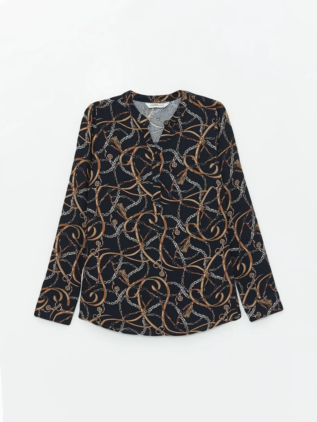Desenli kadın bluz, yumuşak ve hafif viskon kumaşıyla günlük giyim için ideal bir seçenek sunar. Önden düğme kapamalı tasarımı, şıklık ve konforu birleştirerek stilinizi kusursuz bir biçimde tamamlar.