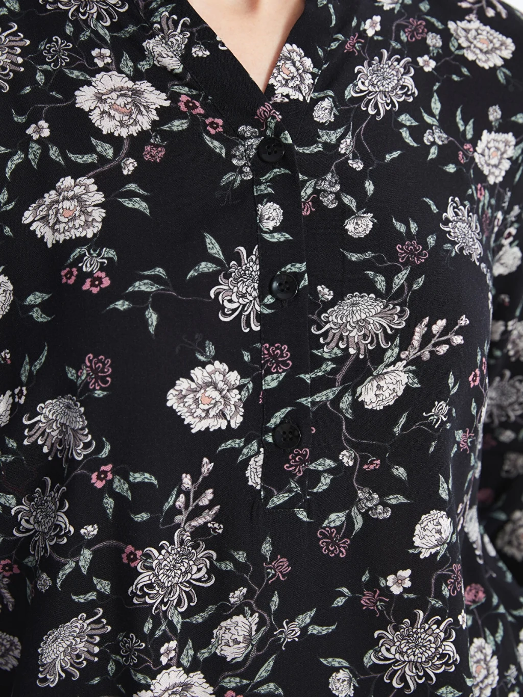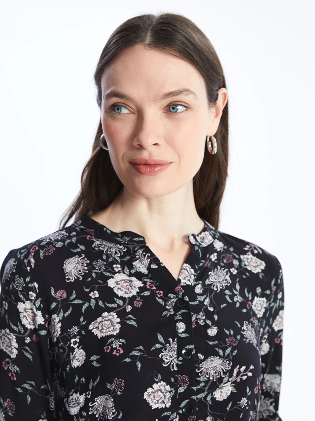 Desenli kadın bluz, yumuşak ve hafif viskon kumaşıyla günlük giyim için ideal bir seçenek sunar. Önden düğme kapamalı tasarımı, şıklık ve konforu birleştirerek stilinizi kusursuz bir biçimde tamamlar.