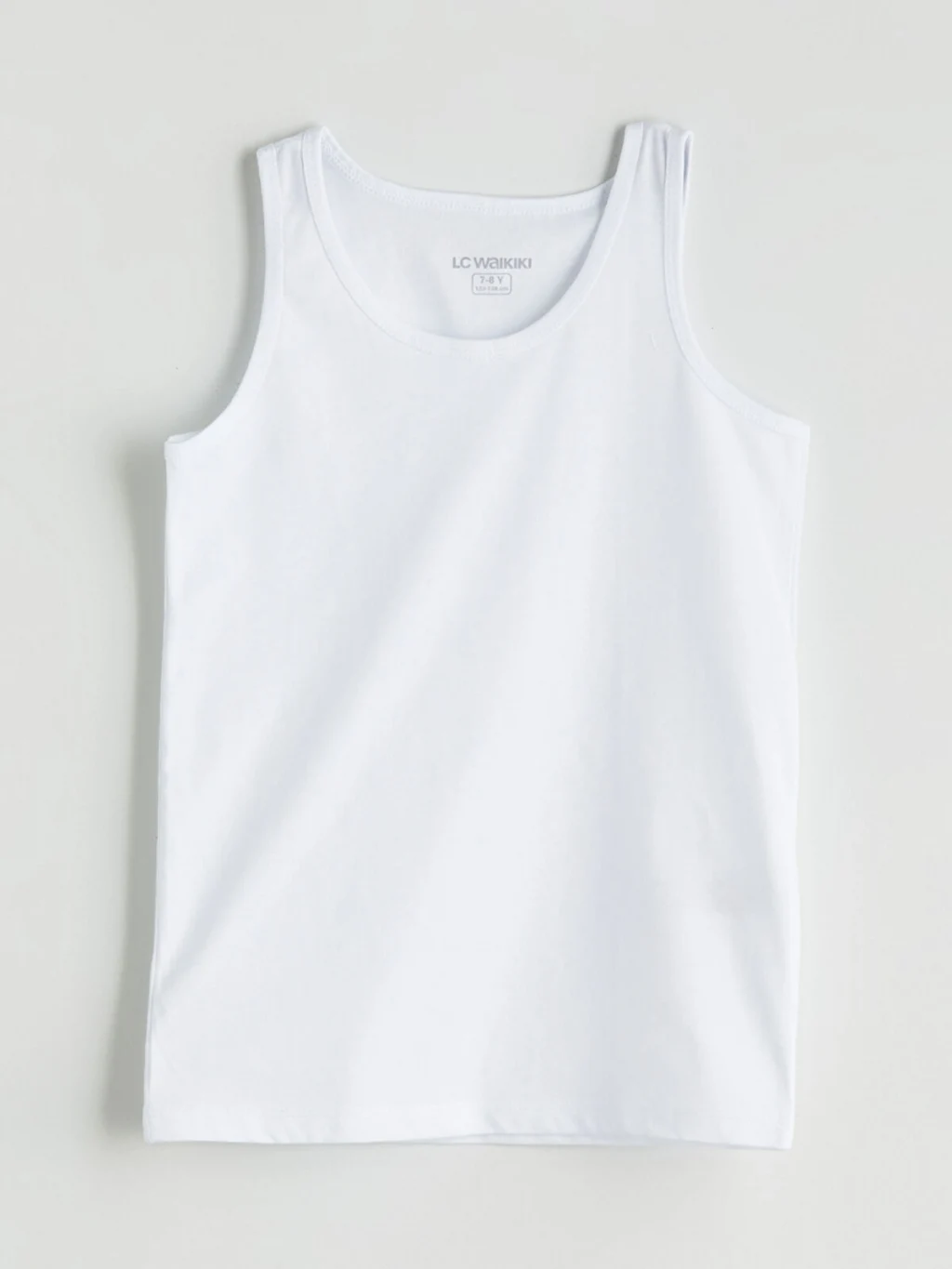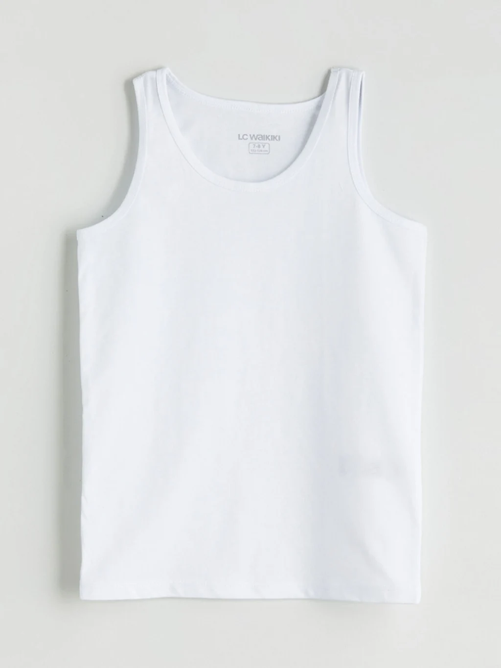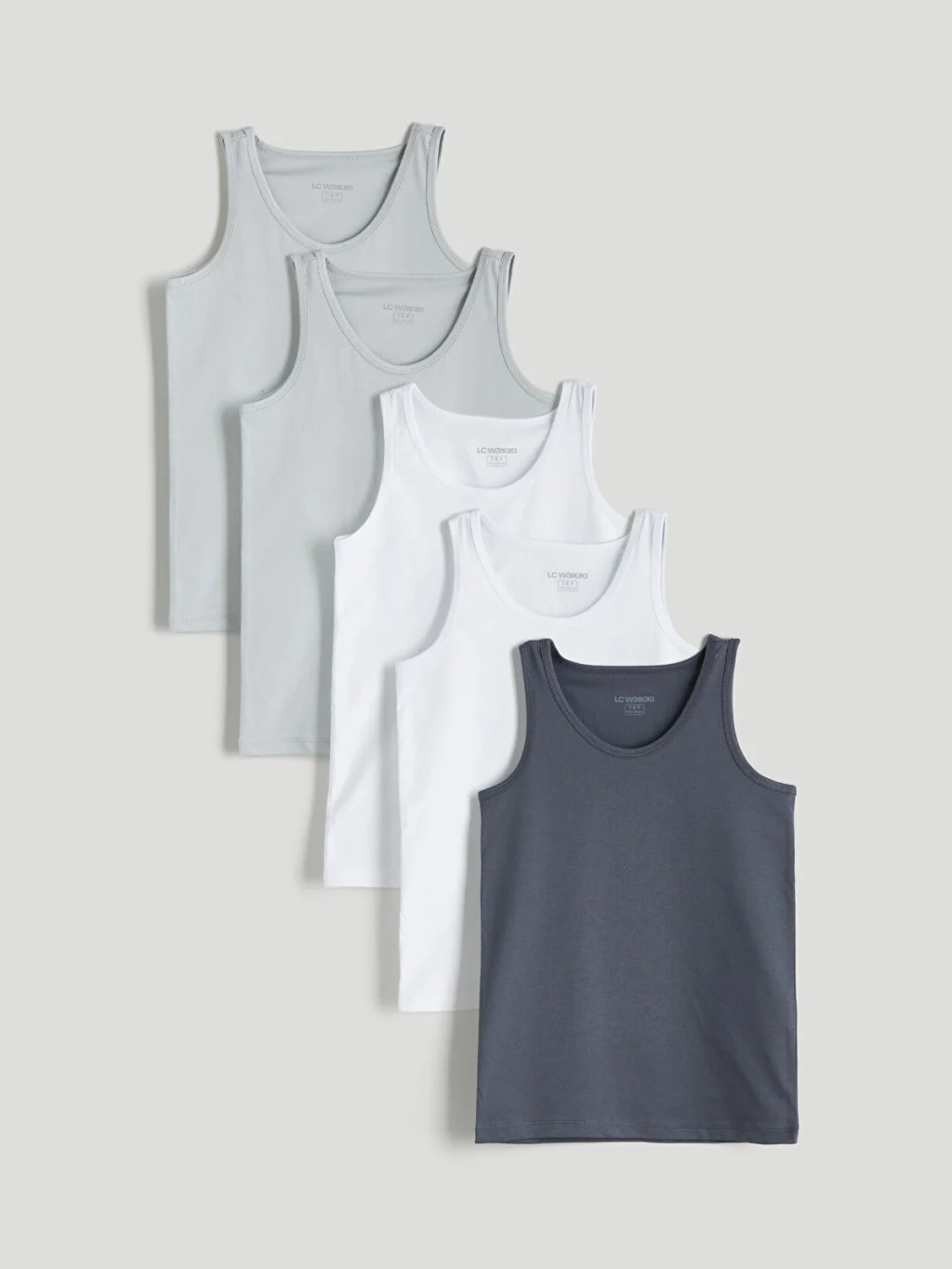 Yuvarlak yaka ve kolsuz tasarımlı erkek çocuk atlet, desensiz kumaştan üretilmiştir ve 5'li paket halinde sunulur.