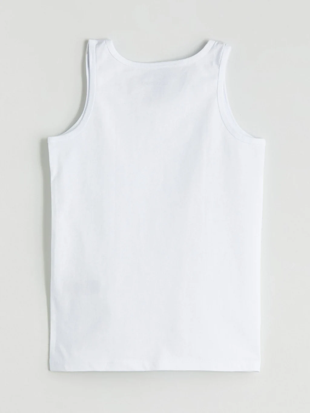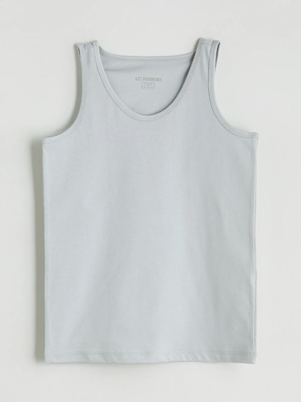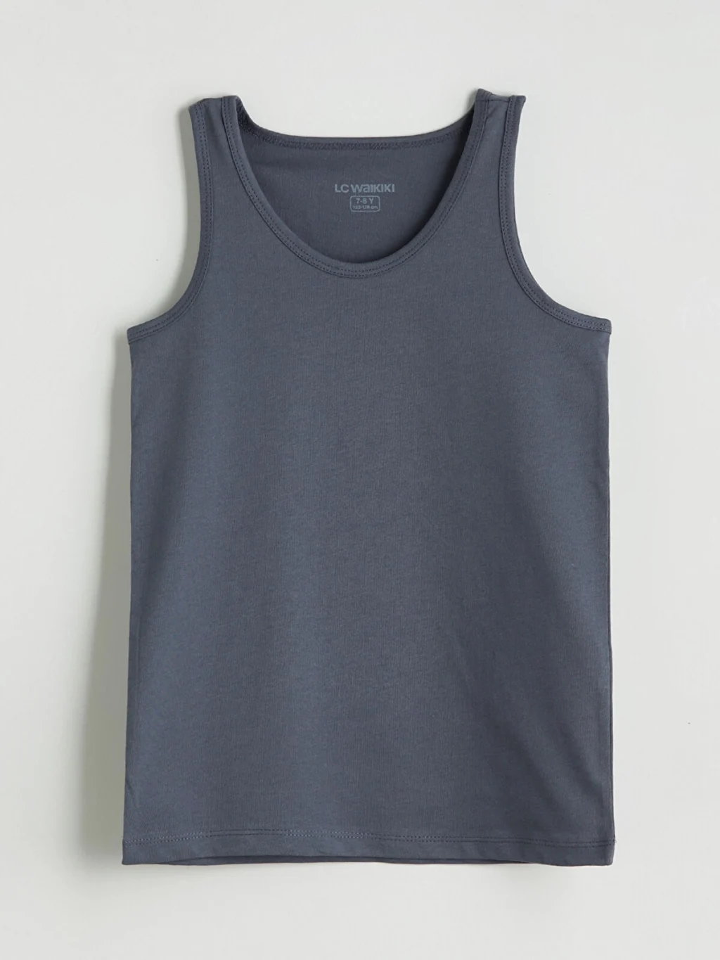 Yuvarlak yaka ve kolsuz tasarımlı erkek çocuk atlet, desensiz kumaştan üretilmiştir ve 5'li paket halinde sunulur.