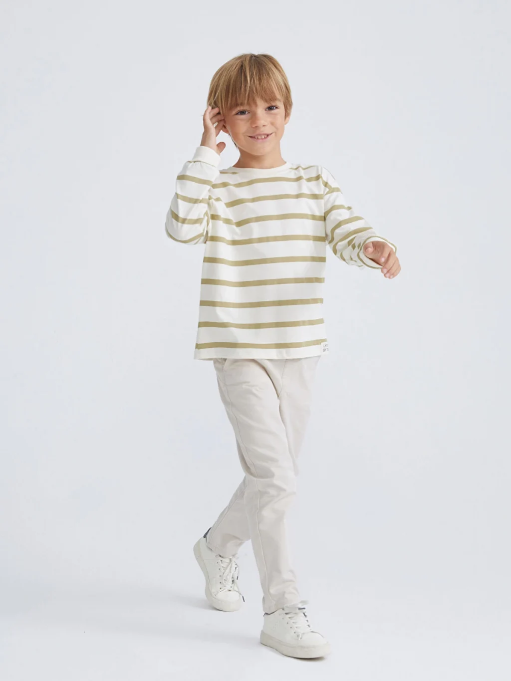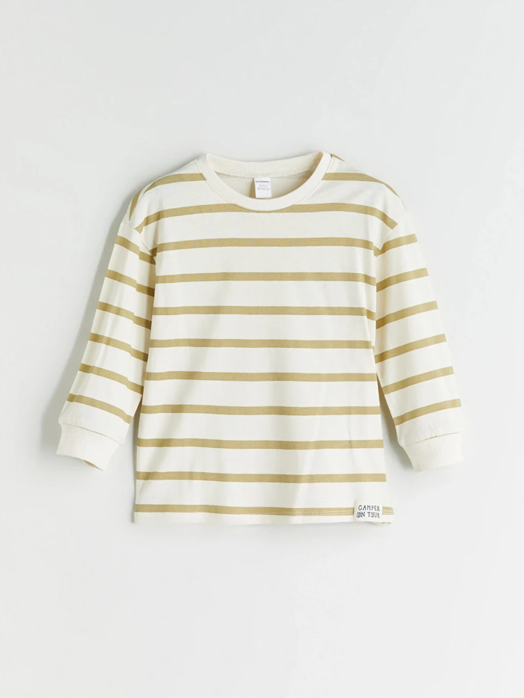 Bisiklet yaka çizgili erkek çocuk tişört, süprem kumaştan üretilmiştir. Uzun kollu ve rahat kalıplı olarak tasarlanmıştır.