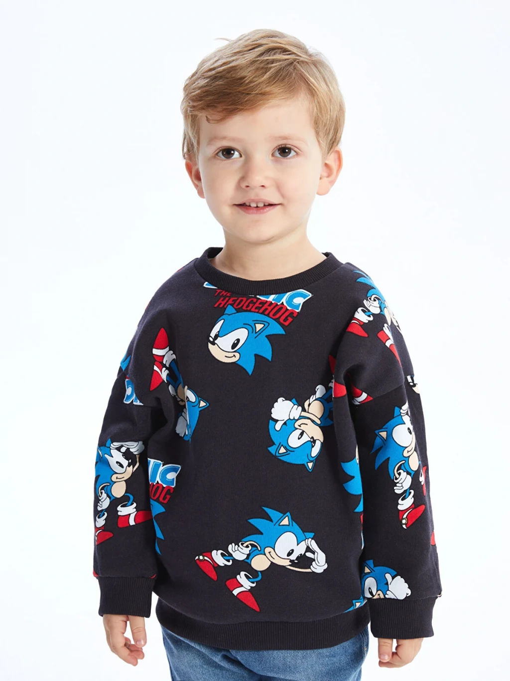 Bisiklet yaka uzun kollu Sonic The Hedgehog baskılı erkek bebek sweatshirt, %100 pamuklu kumaşıyla dikkat çekiyor. Bu tasarım, Sonic hayranları için ideal bir seçenek, aynı zamanda sıcaklık ve tarzı birleştiriyor.