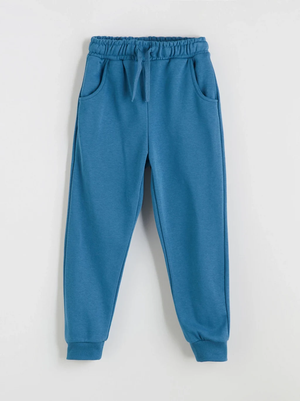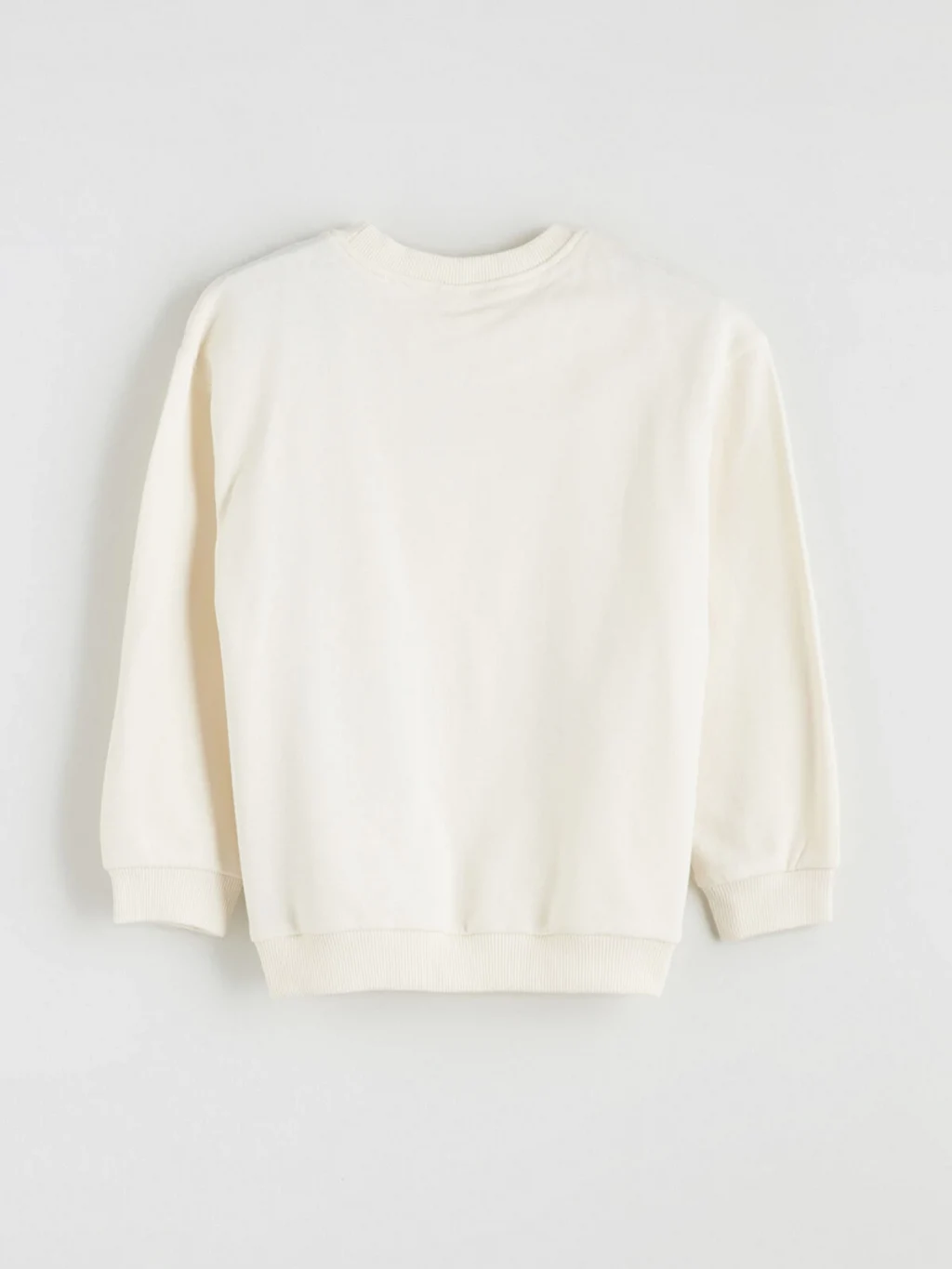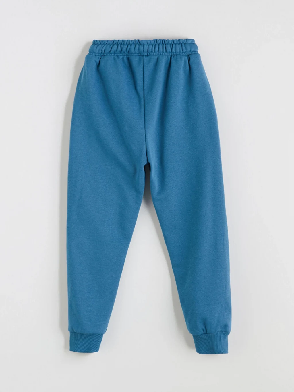 3 iplik kumaştan üretilen erkek çocuk takım, bisiklet yaka ve uzun kollu baskılı sweatshirt ile paçası ribanalı eşofman altından oluşur.