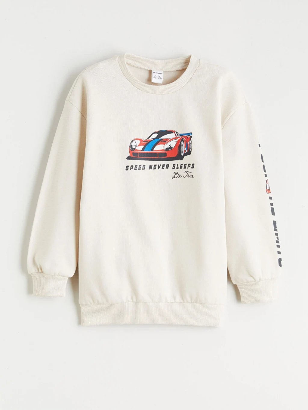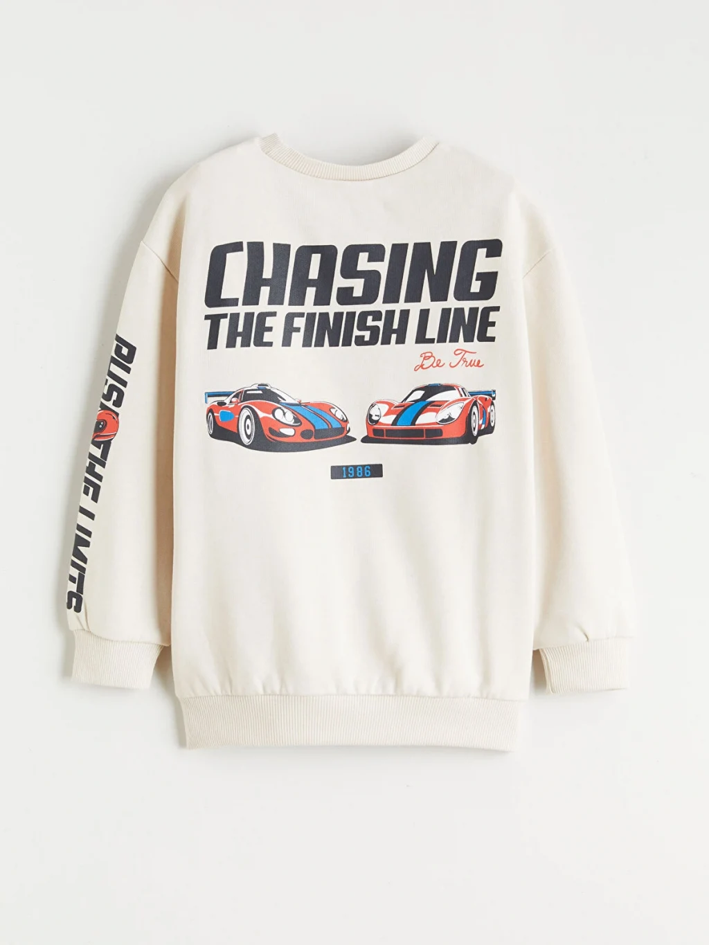 Erkek çocuk takım; bisiklet yaka, uzun kollu, baskılı sweatshirt ve paçası ribanalı eşofman altı. Yüksek pamuk içerikli 3 iplik şardonlu kumaştan üretilmiştir.