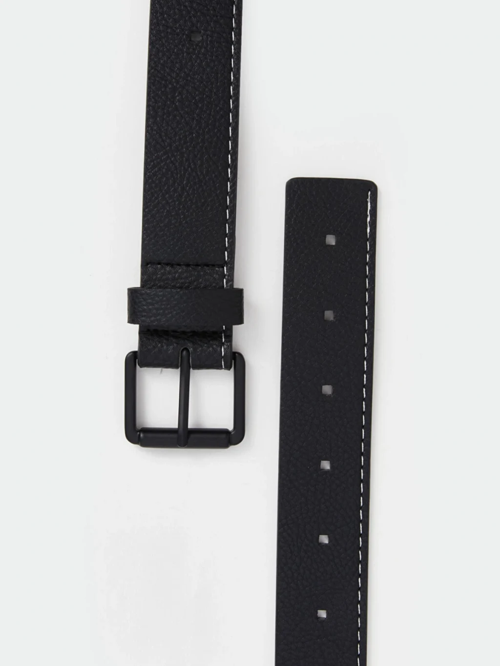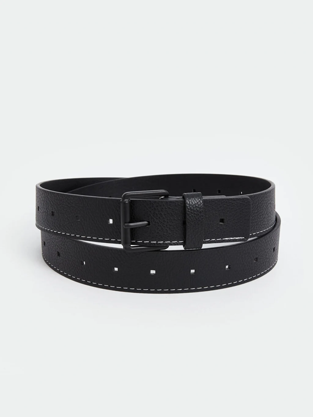 Deri görünümlü kemer, şık bir stil sunar ve her türlü kombini tamamlamak için mükemmel bir aksesuardır. Siyah rengi ön tokası, kemerin genel estetiğini yükselterek zarif bir parlaklık katar.