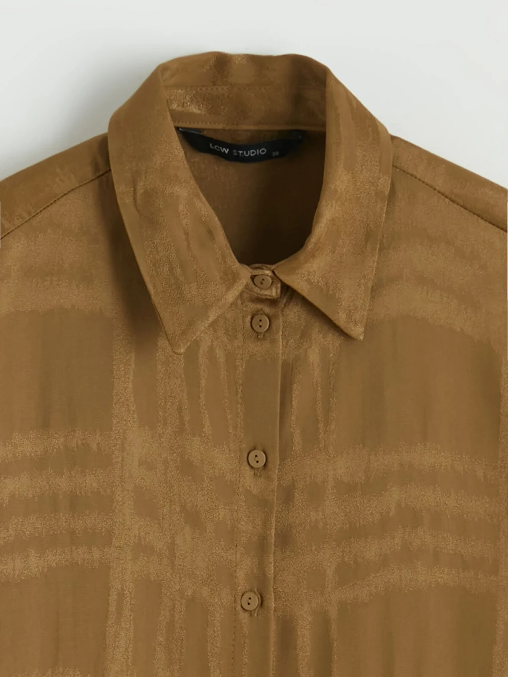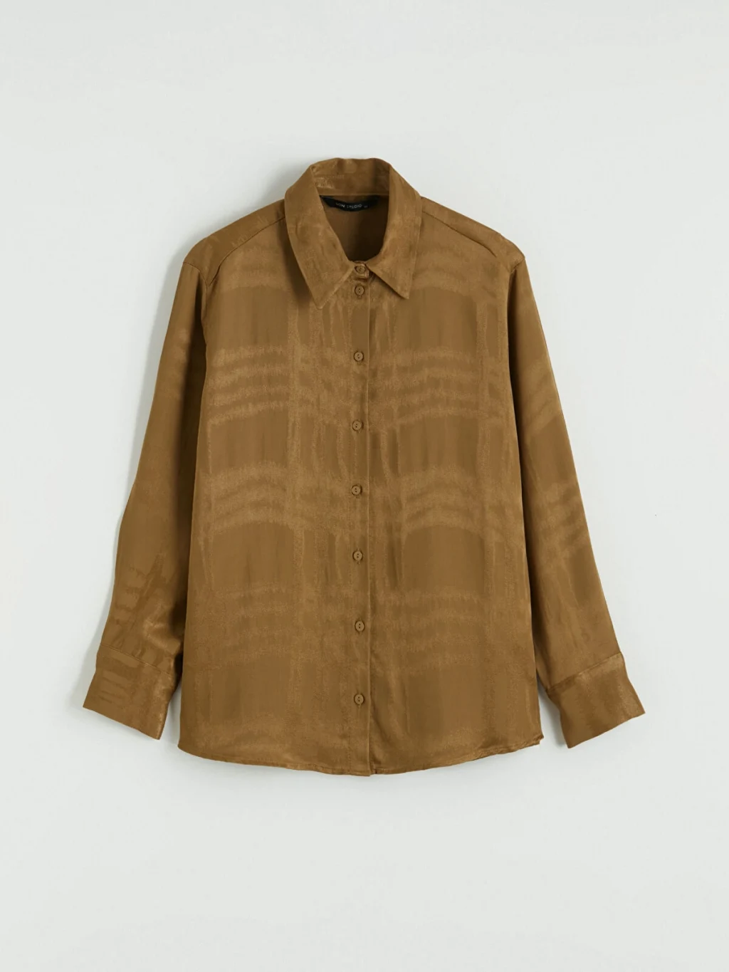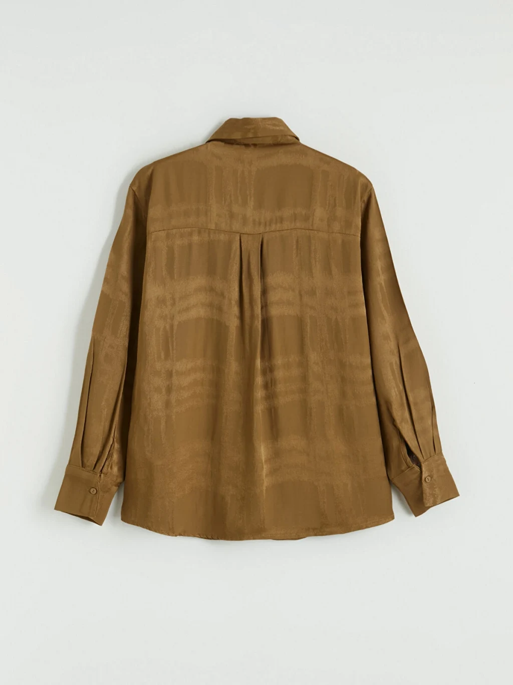 Desenli kumaştan üretilmiş, uzun kollu kadın gömlek. Manşetli ve önden düğme kapamalı tasarıma sahiptir.