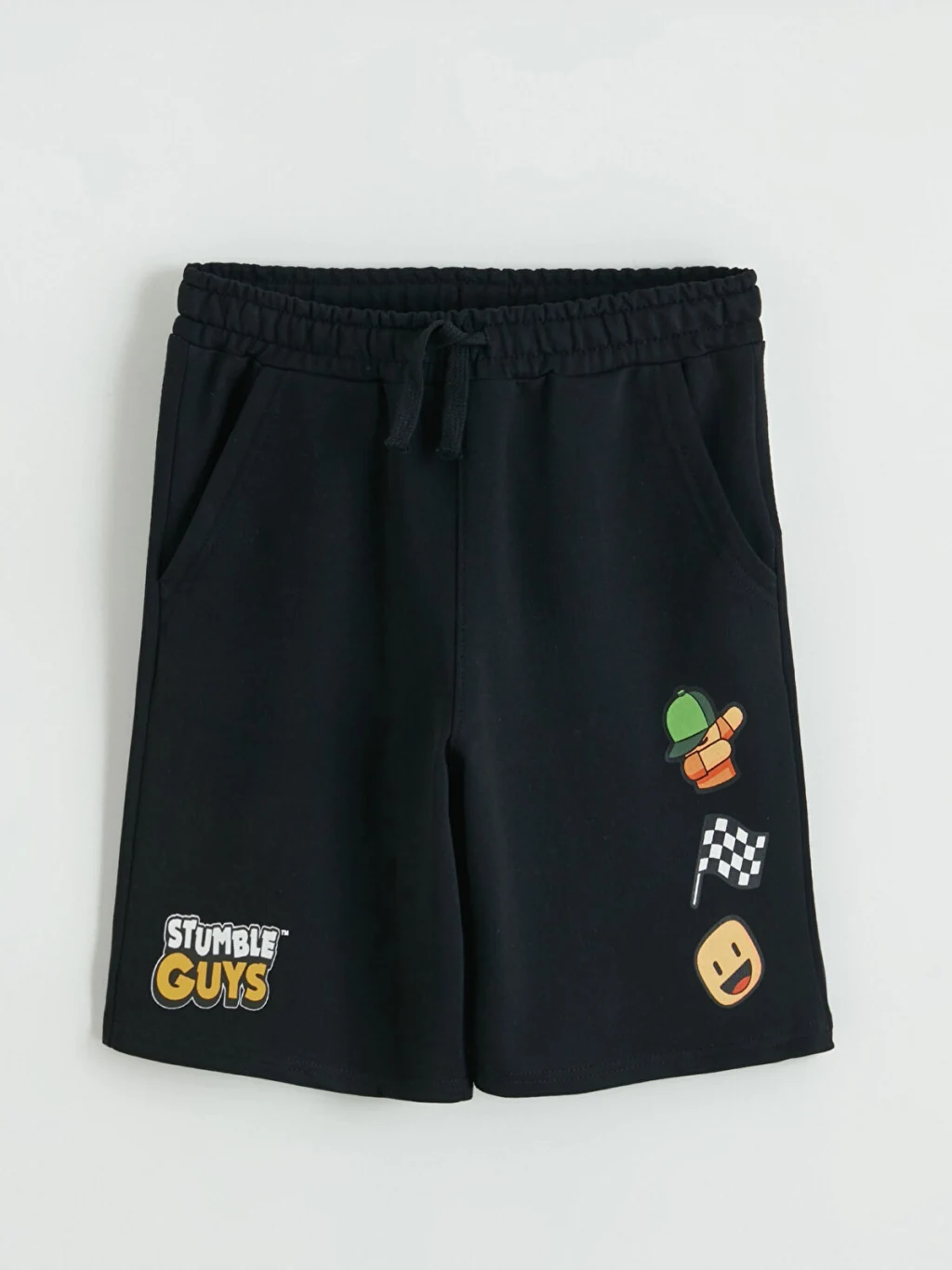 Stumble Guys lisanslı erkek çocuk şort, beli lastikli ve ayarlanabilir ipli olup, cepli tasarıma sahiptir.