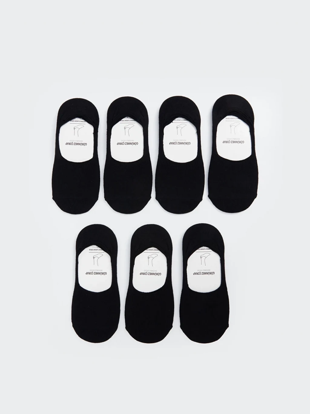 Düz tasarıma sahip, görünmez formdaki erkek babet çorap, yedi çiftten oluşan set halinde sunulur.