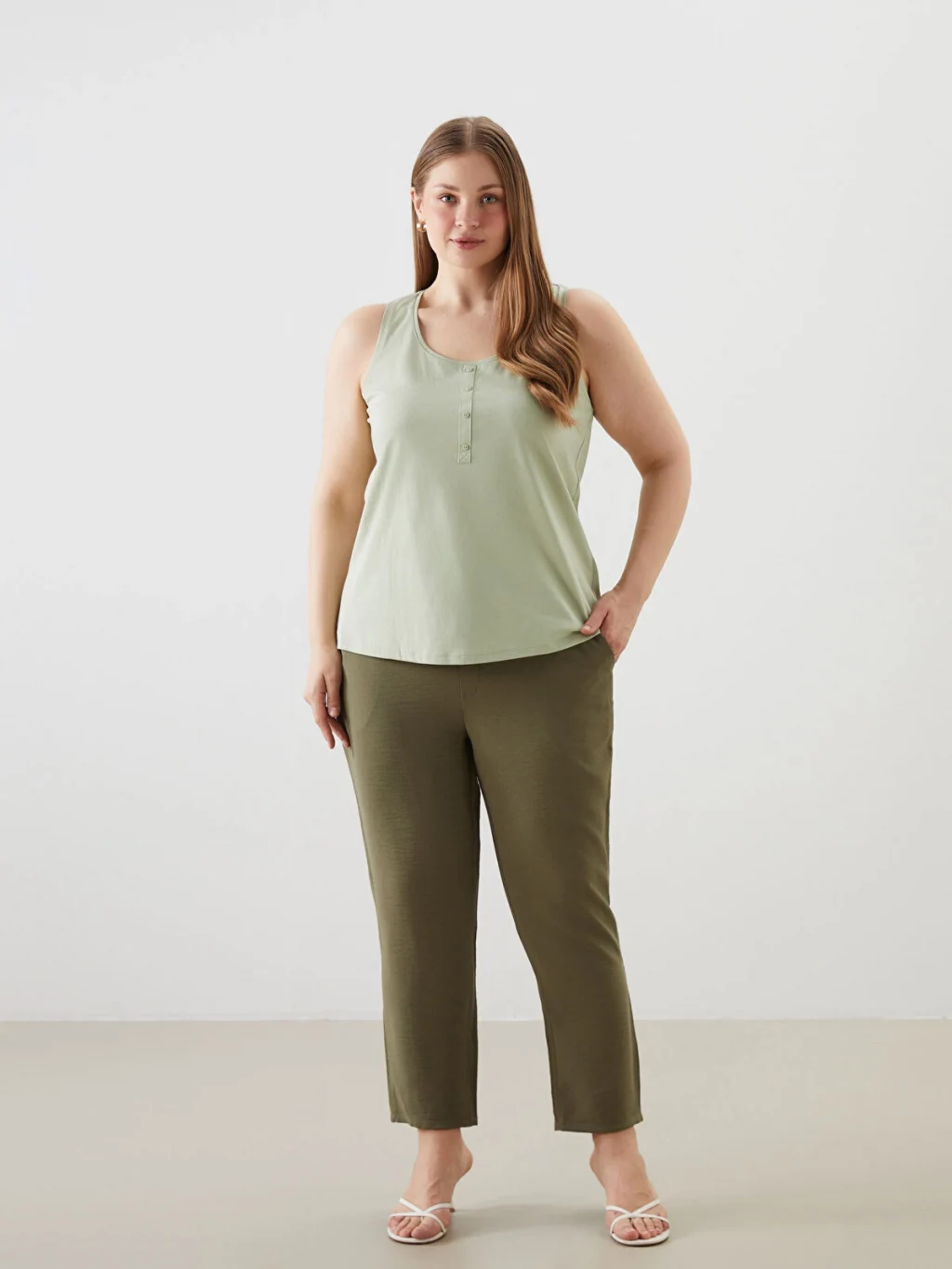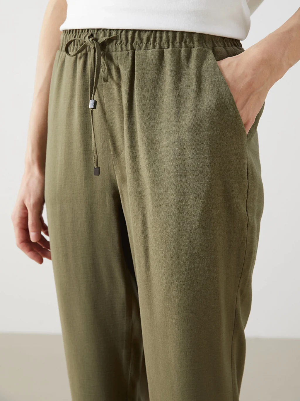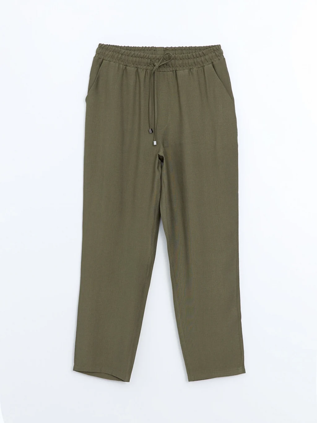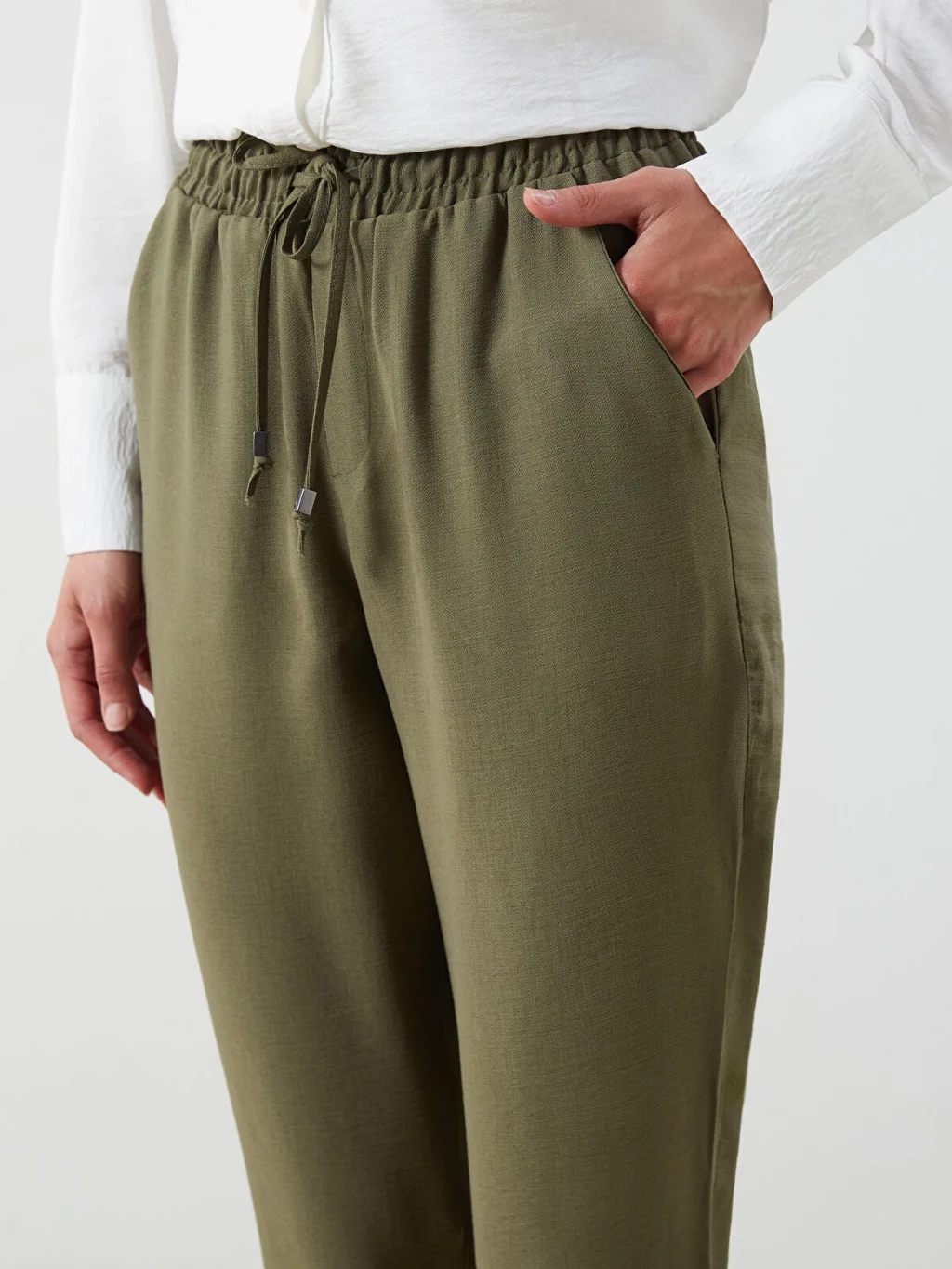 LCW Grace Bej Beli Lastikli Keten Karışımlı Kadın Pantolon