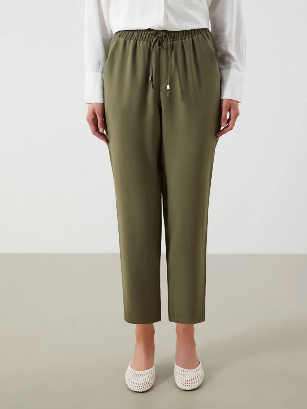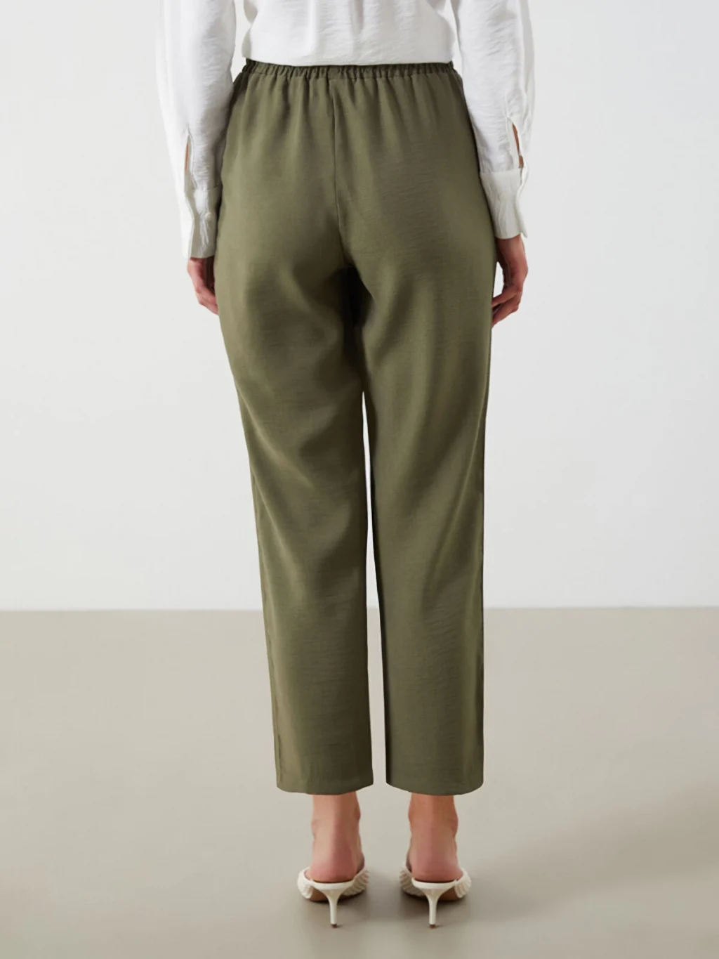 LCWAIKIKI Classic Haki Beli Lastikli Havuç Kesim Kadın Pantolon