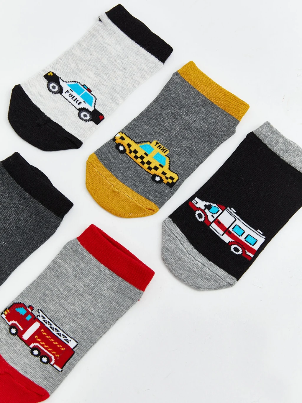 Erkek çocuk için üretilmiş olan patik çorap, araç desenlidir ve paket içeriği beş çiftten oluşmaktadır.