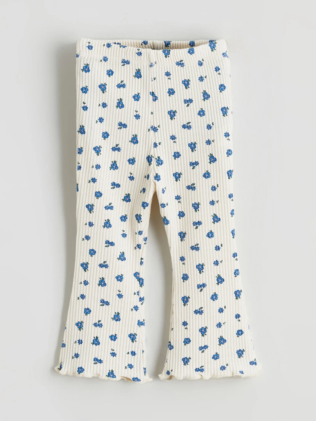 Kız bebek takım; fırfırlı bebe yakalı, uzun kollu, önden düğmeli gömlek ve desenli, ispanyol paça pantolondan oluşur. %100 pamuklu kumaştır.
