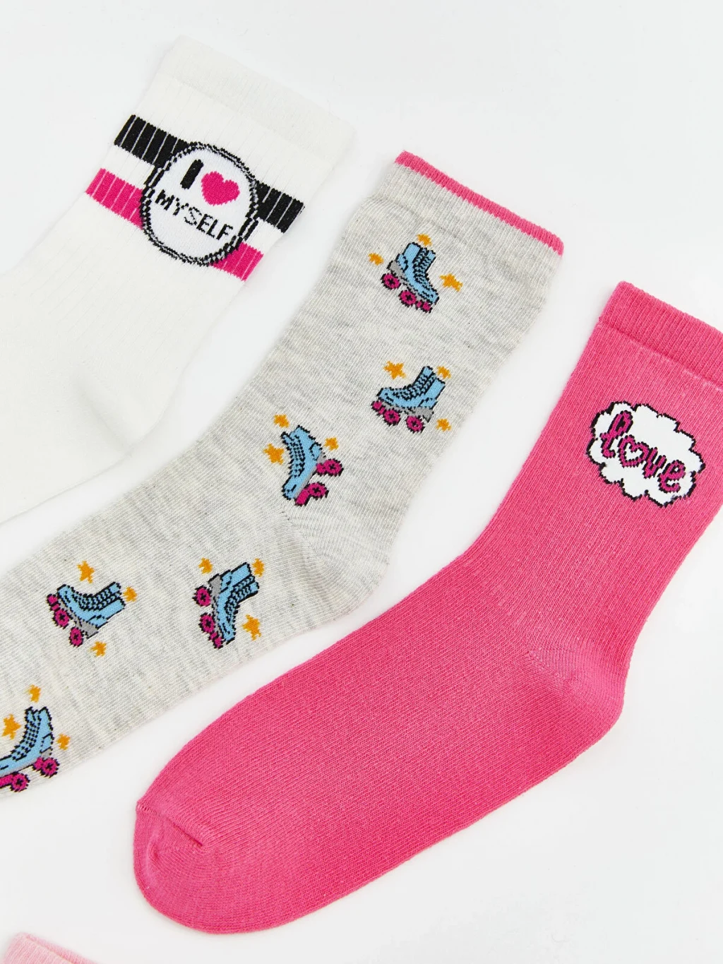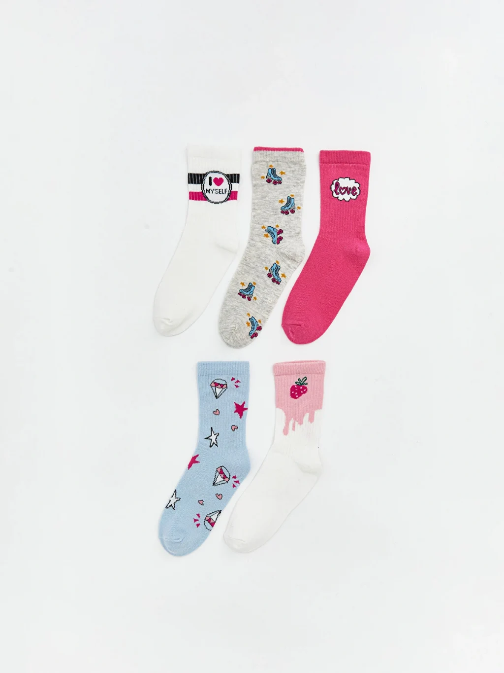 5'li kız çocuk soket çorap, pamuk karışımlı esnek kumaştan üretilmiştir.