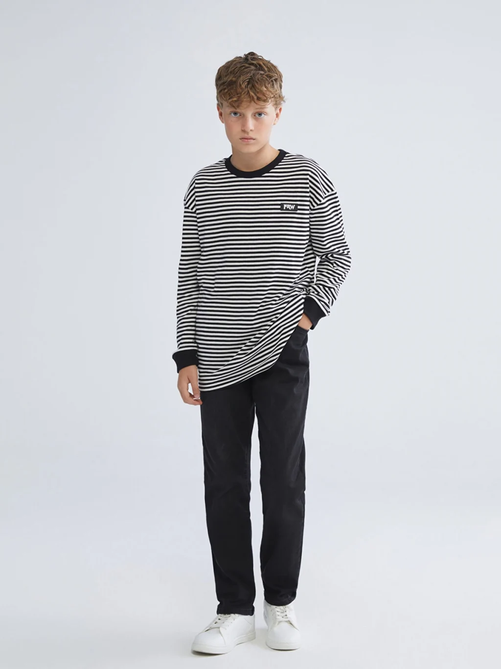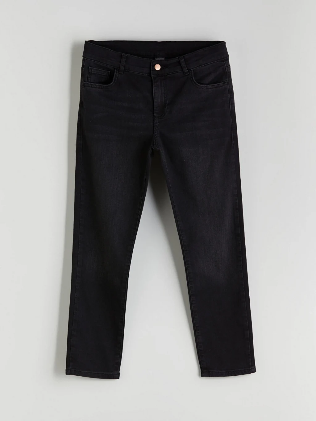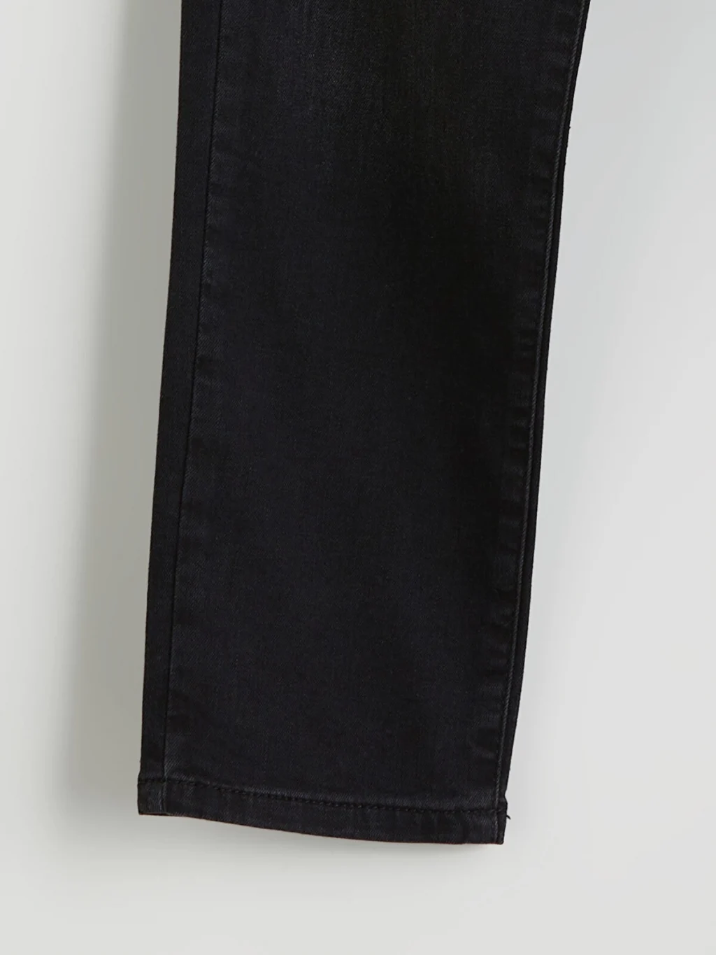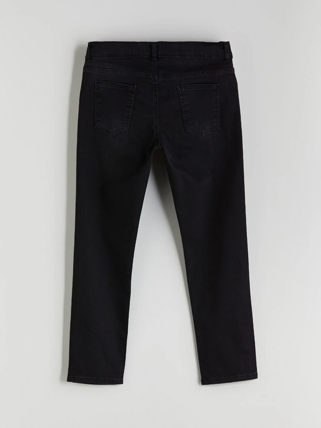 Slim fit jean pantolon, paçaya doğru daralan bir kesime sahiptir. Beli içten ayarlanabilir lastiklidir.