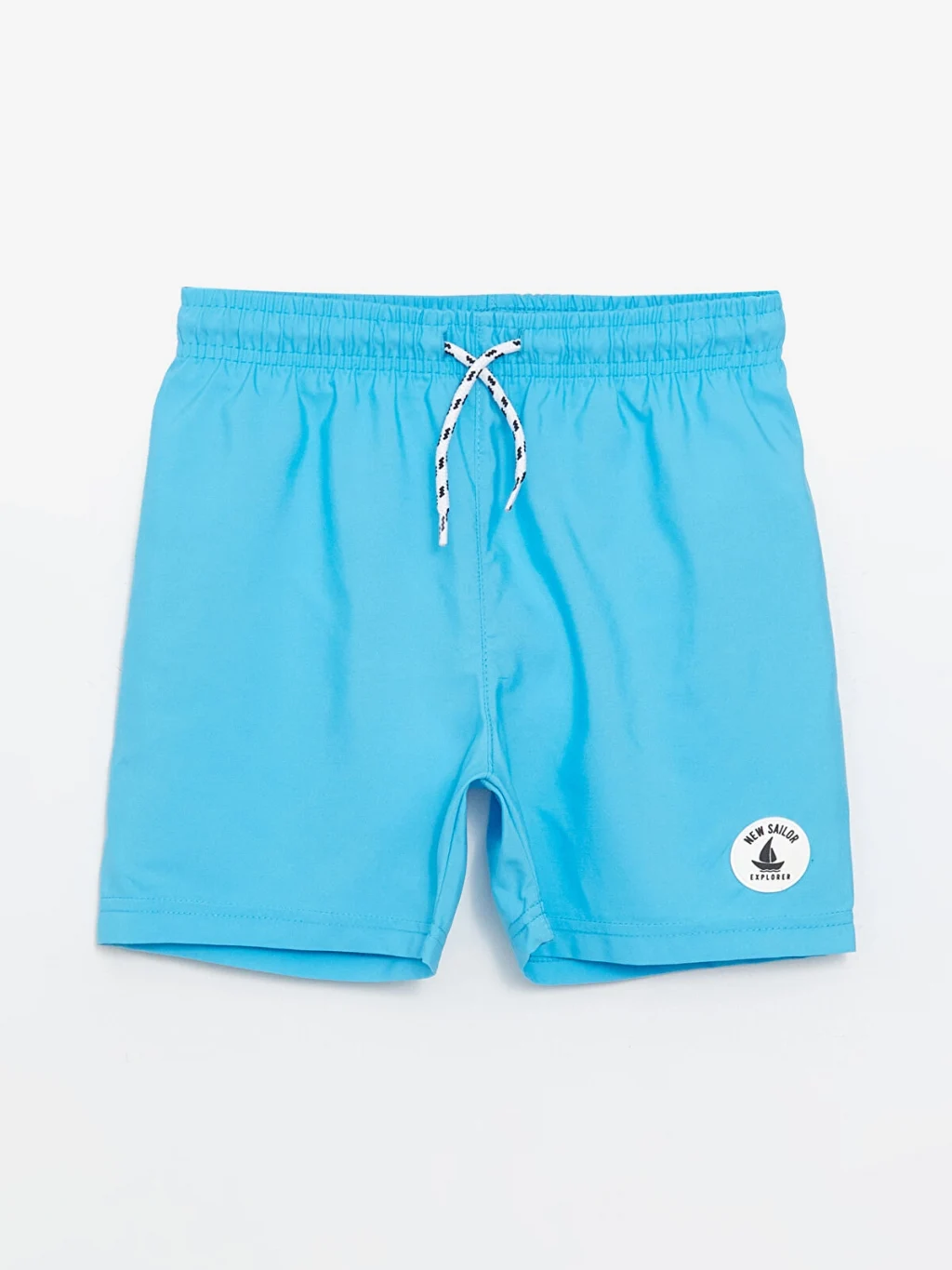 Beli lastikli ve ayarlanabilir bağcıklı erkek çocuk yüzme şortu, hızlı kuruma ve UV koruma özelliklerine sahiptir. Paçasında arma detayı bulunur.