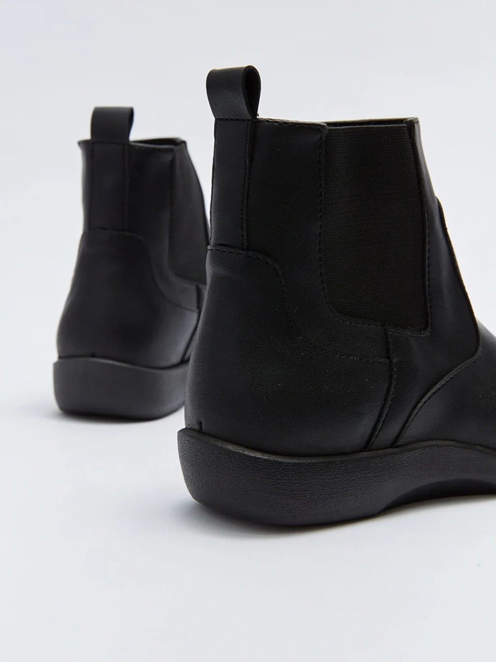 LCW STEPS Siyah Deri Görünümlü Kadın Bot
