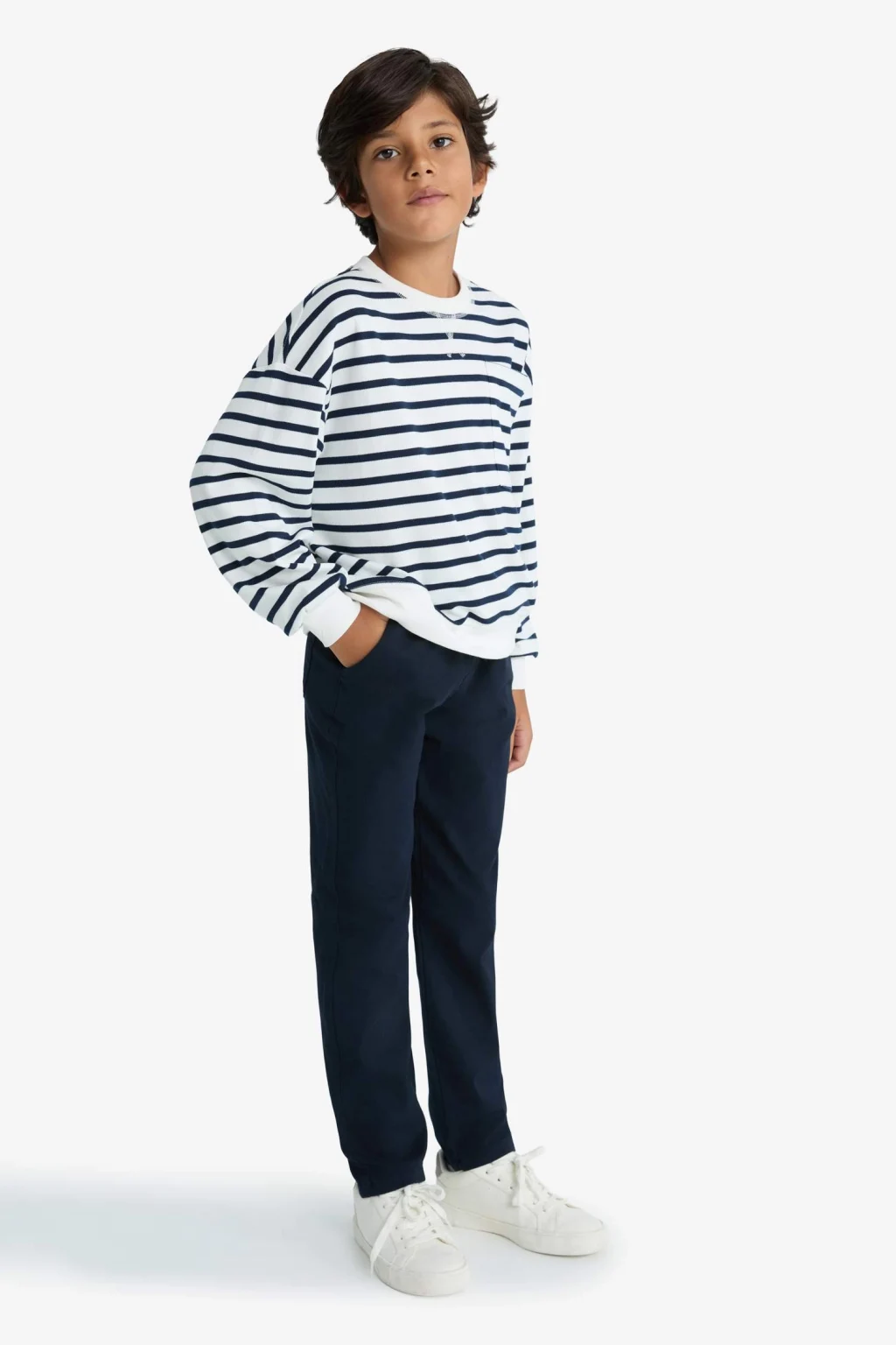 Düz paça kesimi ve dayanıklı gabardin kumaşıyla bu erkek çocuk pantolon, hem rahat hem şık bir görünüm sunar. Günlük kullanım ve özel günler için ideal bir parçadır.