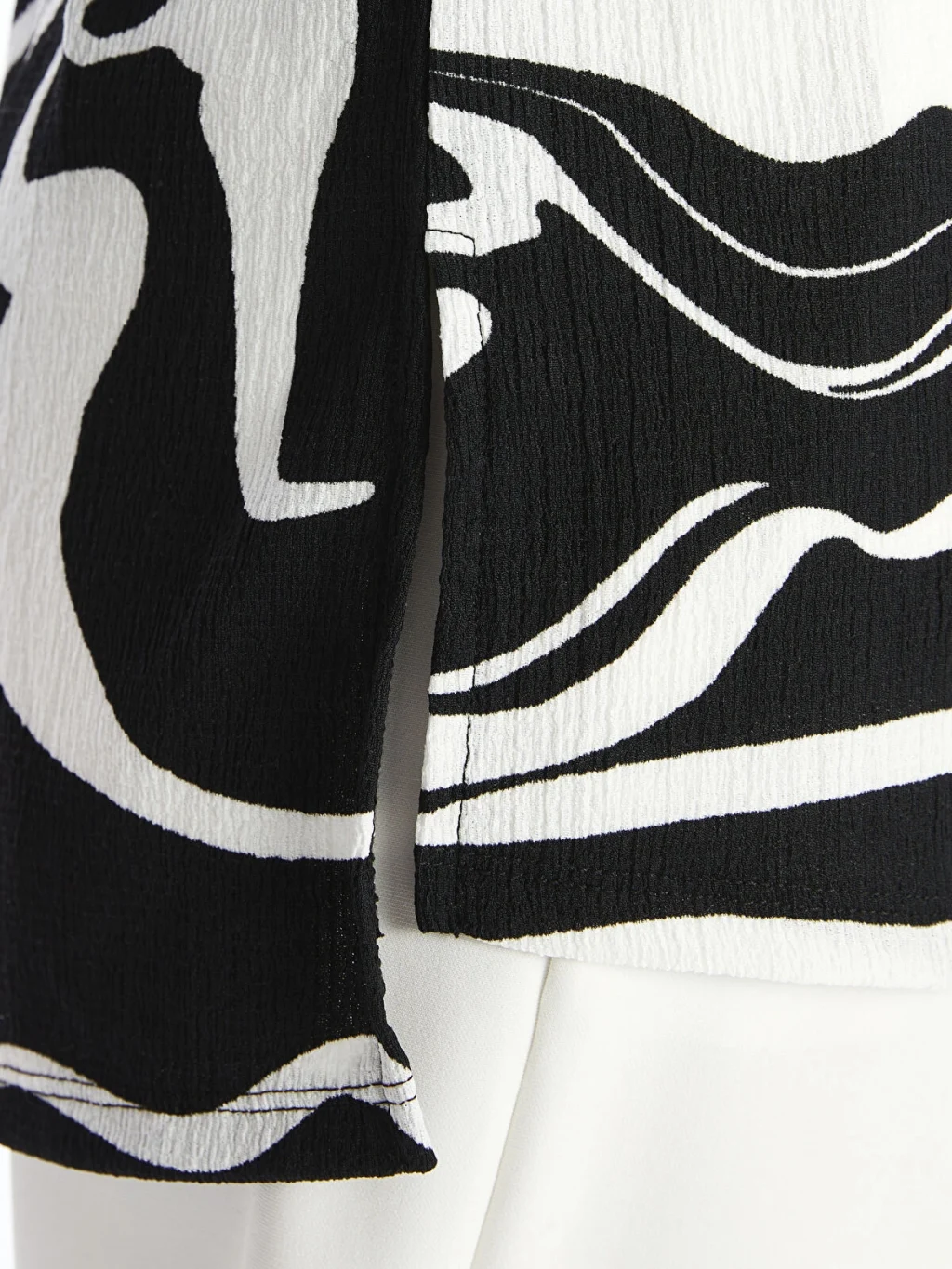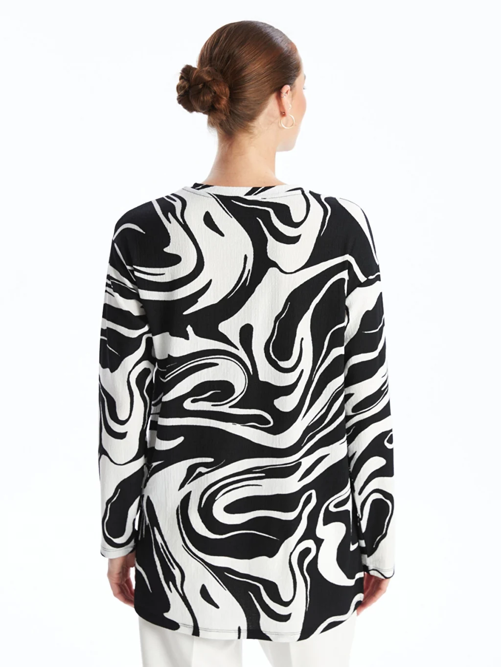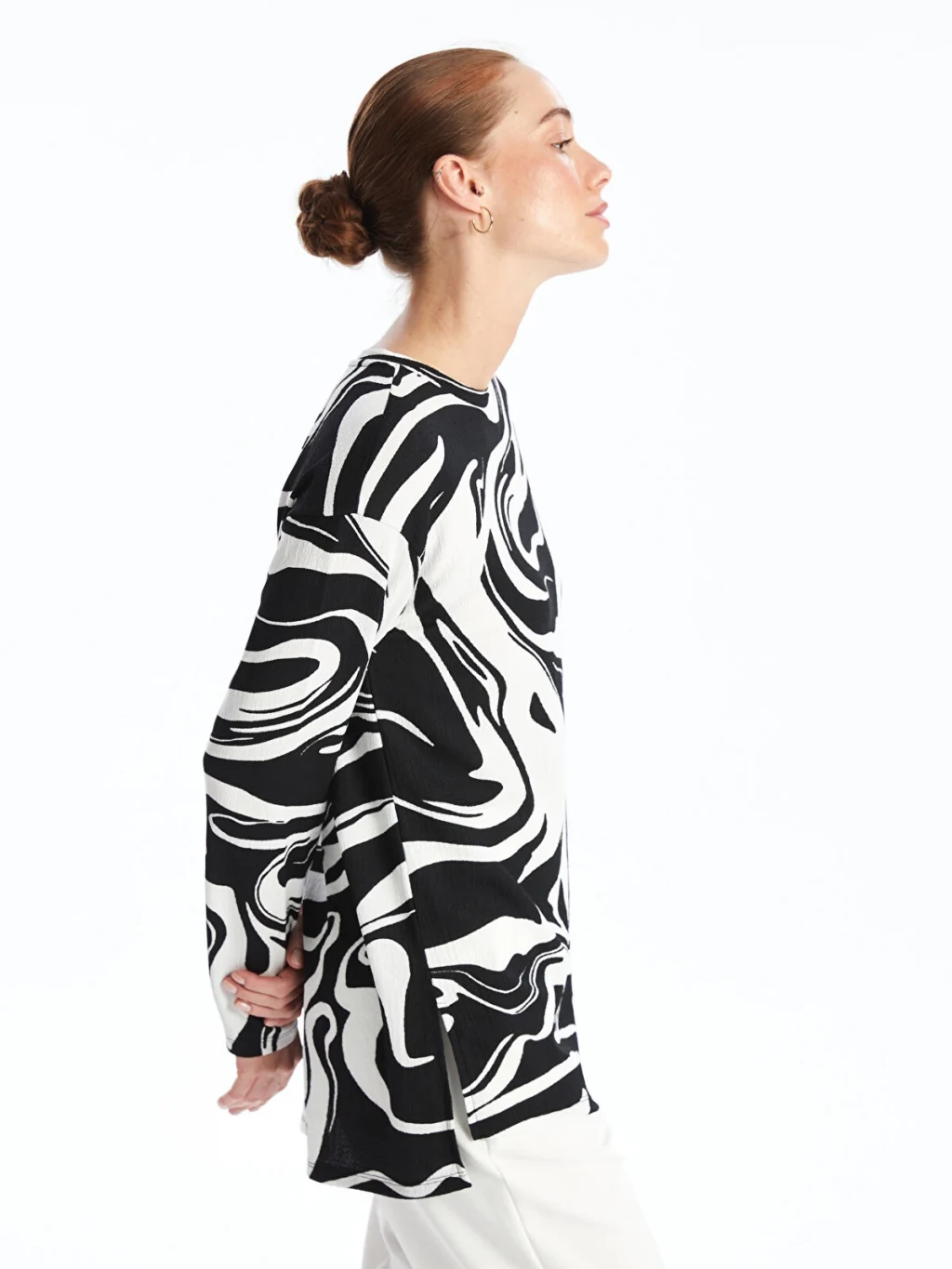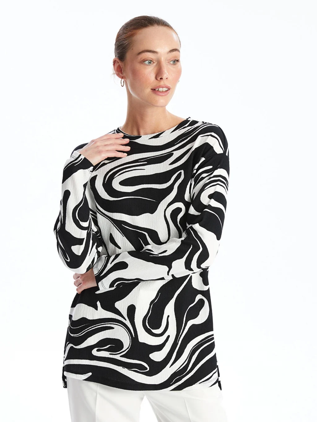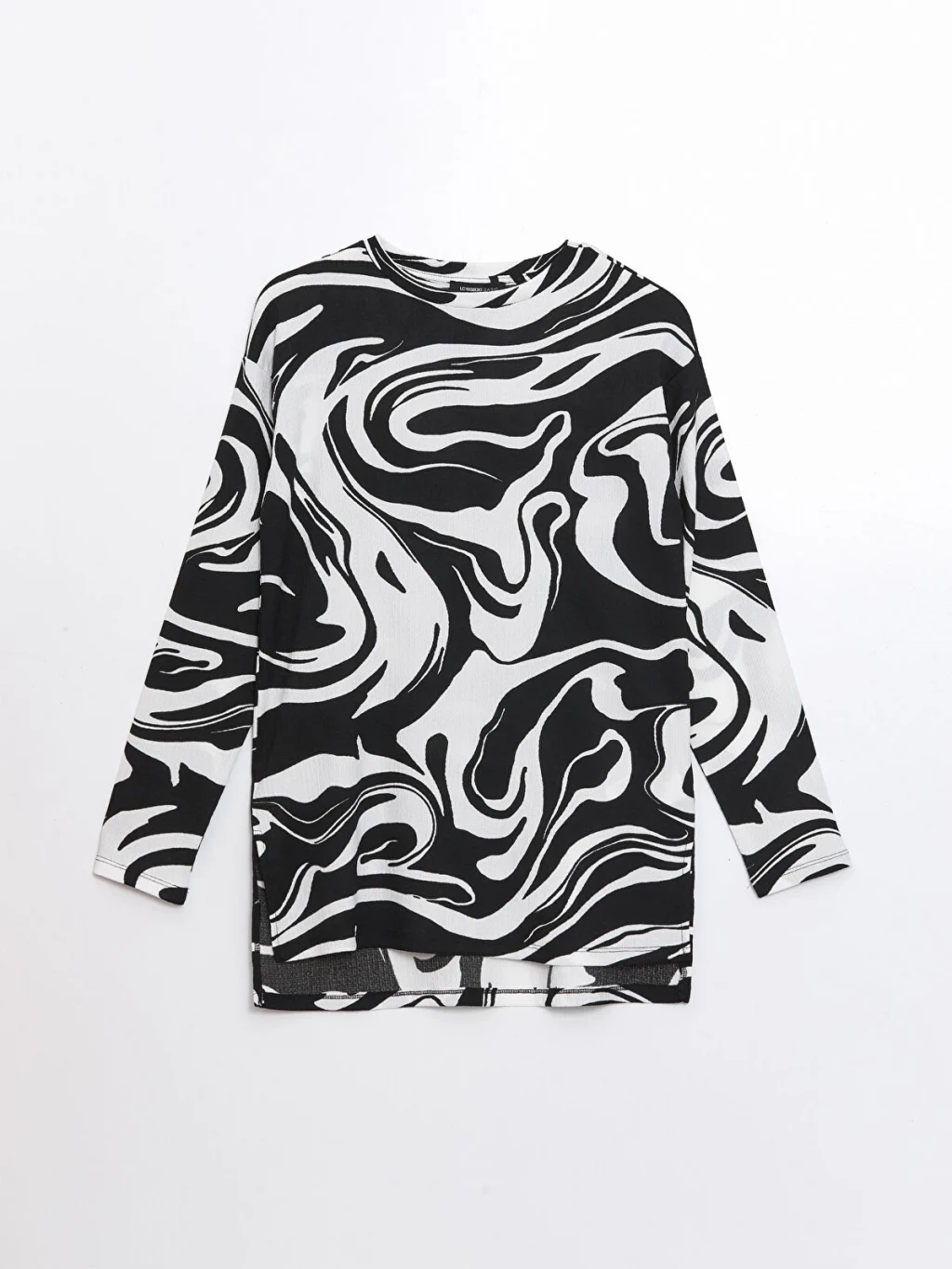 Bisiklet yaka uzun kollu kadın tunik, 2 iplik kumaştan üretilmiştir. Yumuşak dokusu ve hafif yapısı ile konfor sunar. Bilekleri ve alt kısmındaki ribana detayları bulunur. Arkası daha uzun tasarımı sayesinde rahat bir kullanım sağlar.