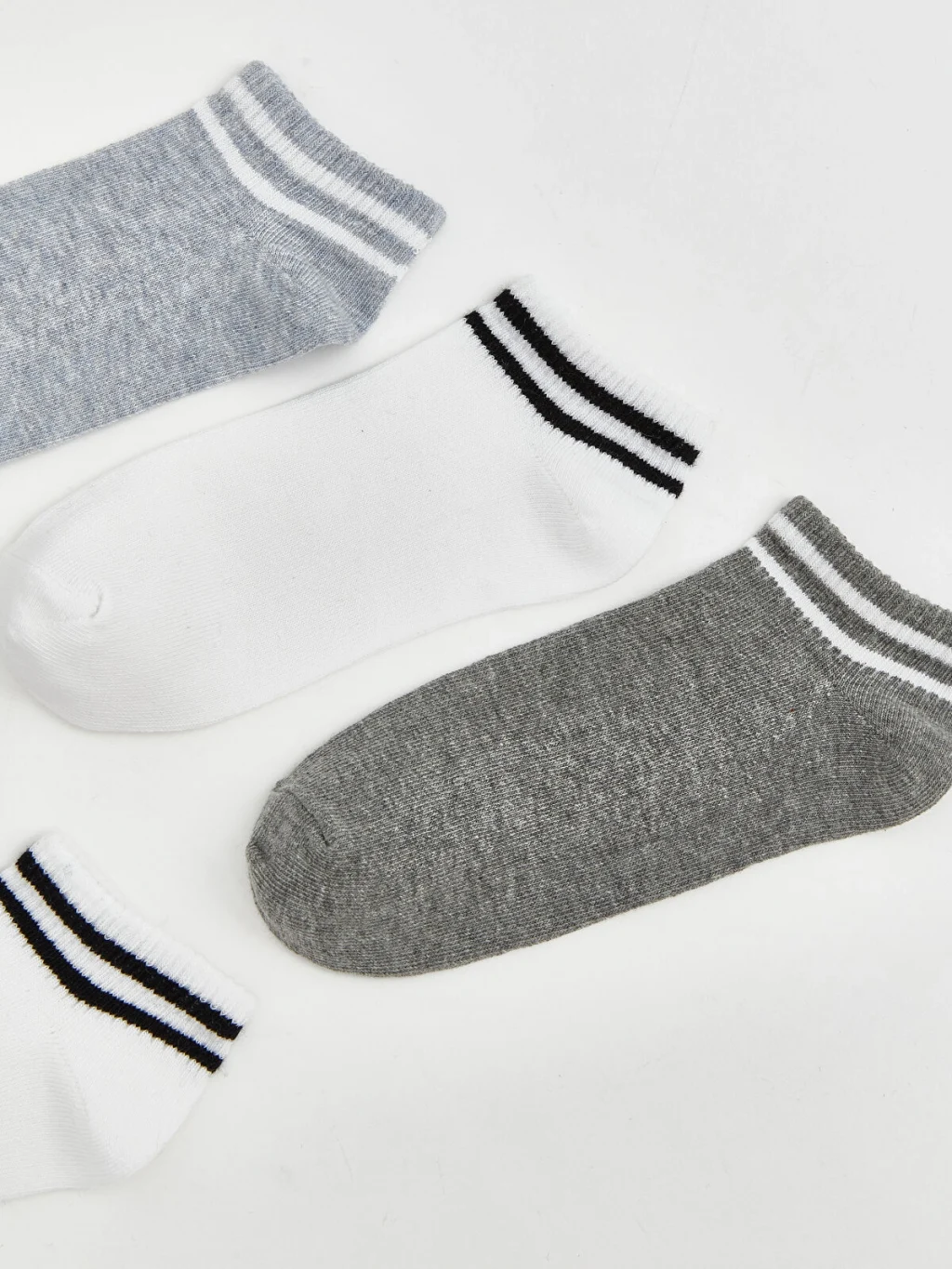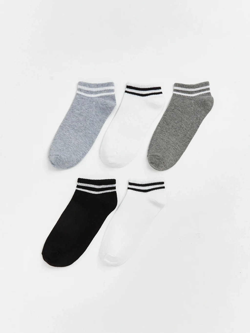 Erkek çocuk için üretilmiş, bilek kısmı çizgili tasarıma sahip patik çorap, 5'li paket halinde satılmaktadır.