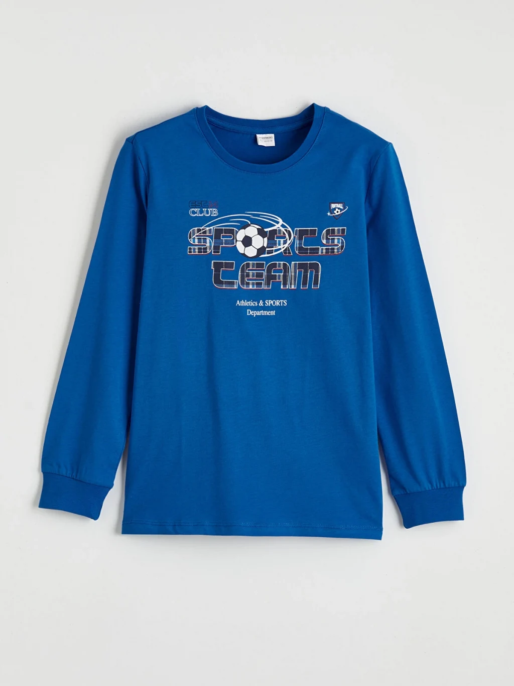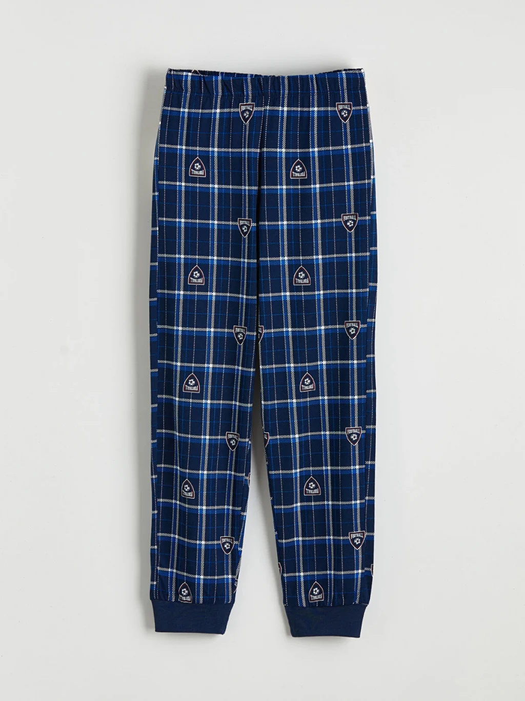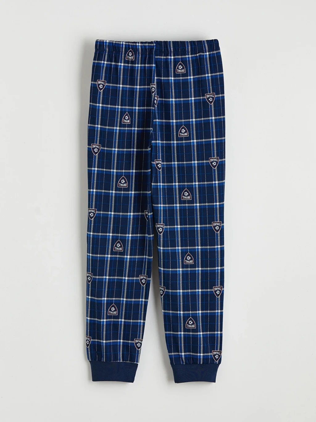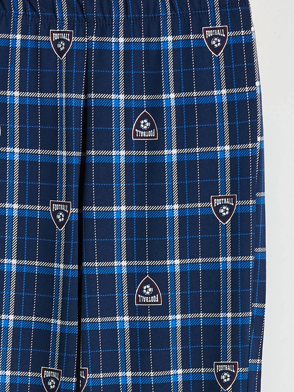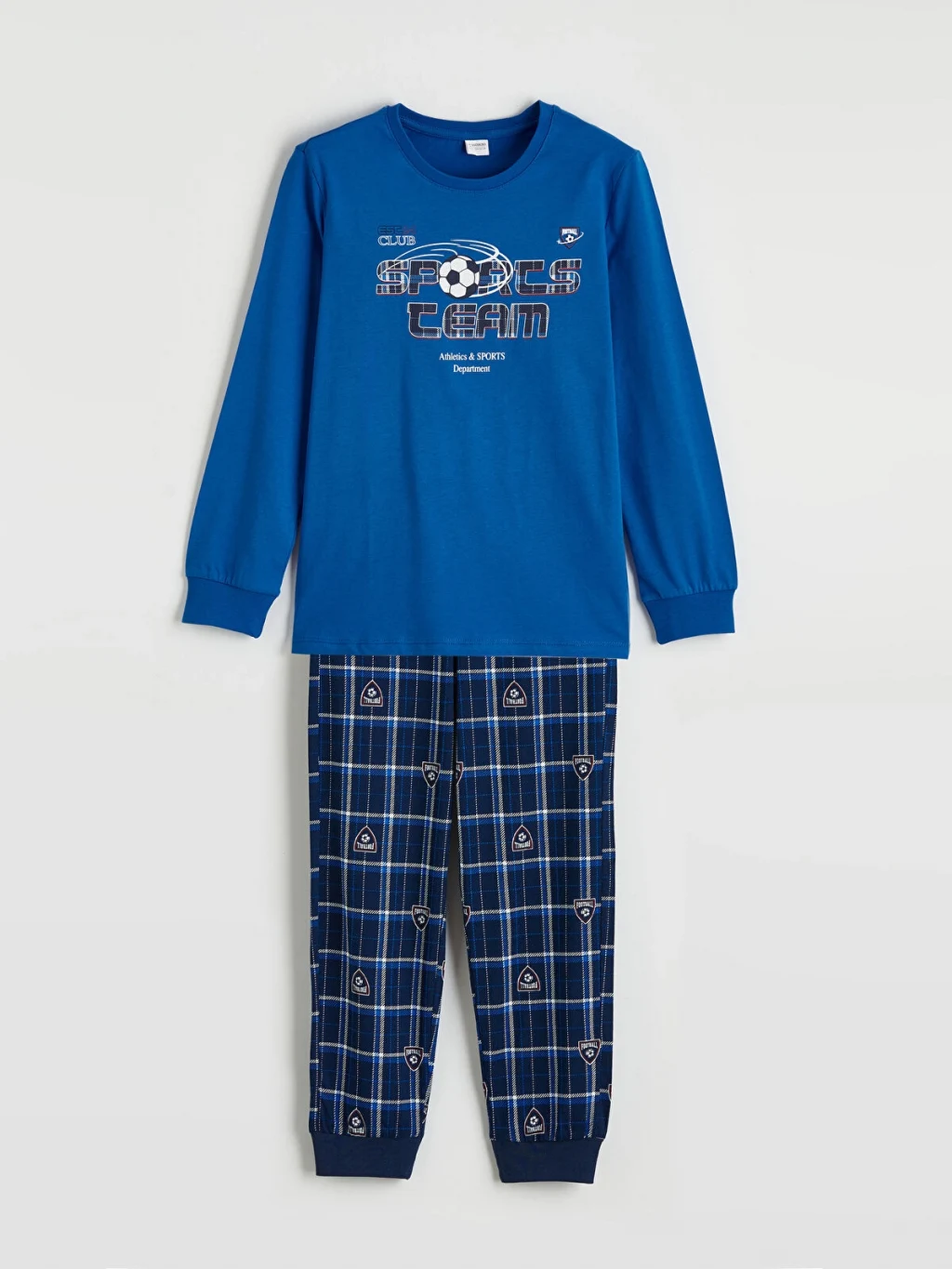 Erkek çocuk pijama takımı, %100 pamuklu kumaştan üretilmiştir. Bisiklet yaka, uzun kollu üst ve desenli, paçaları ribanalı alttan oluşur.