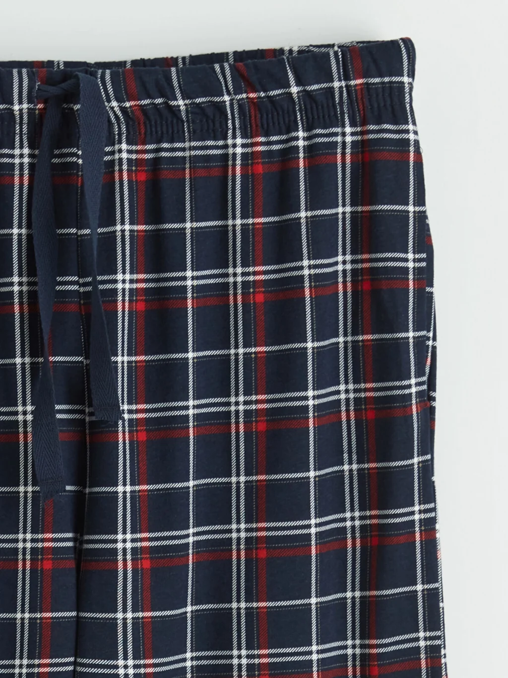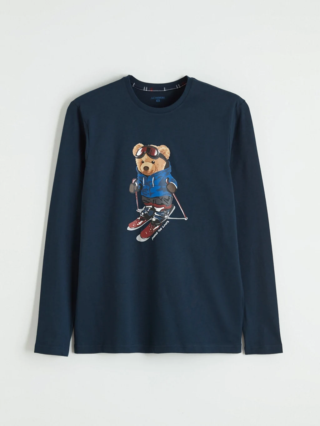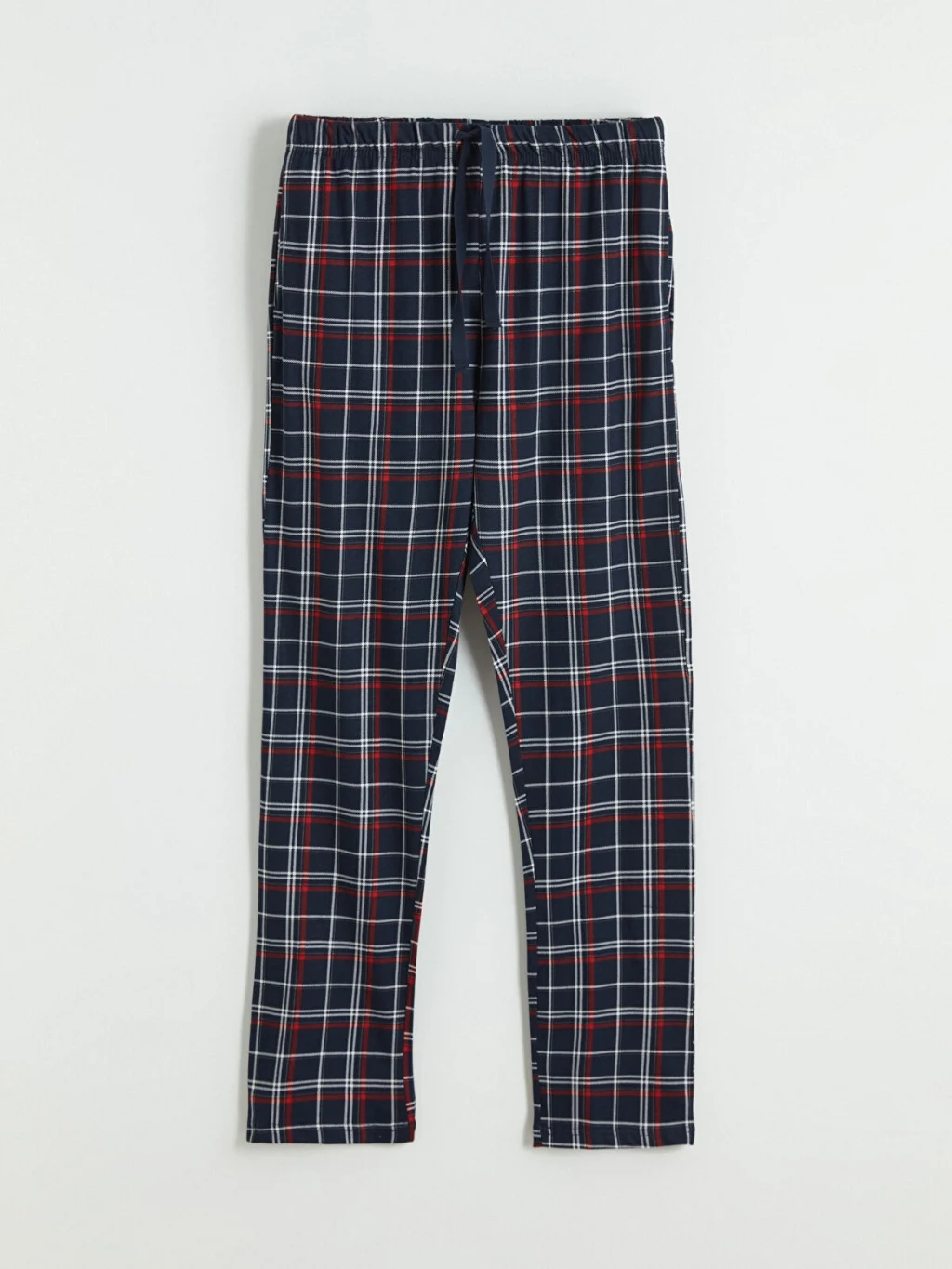 Erkek pijama takımı, bisiklet yaka ve uzun kollu baskılı üst ile kareli desenli alttan oluşmaktadır. Pamuklu penye kumaştan üretilmiştir.