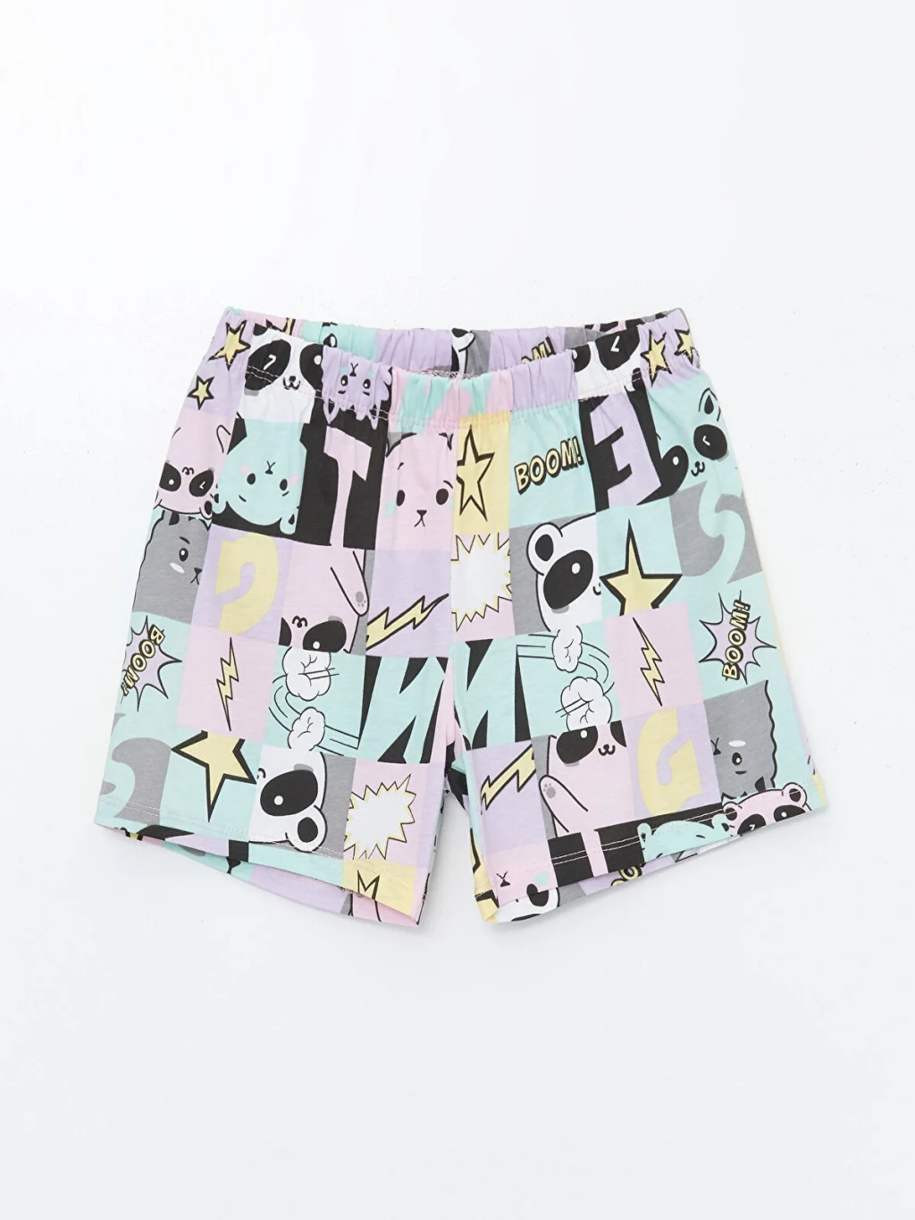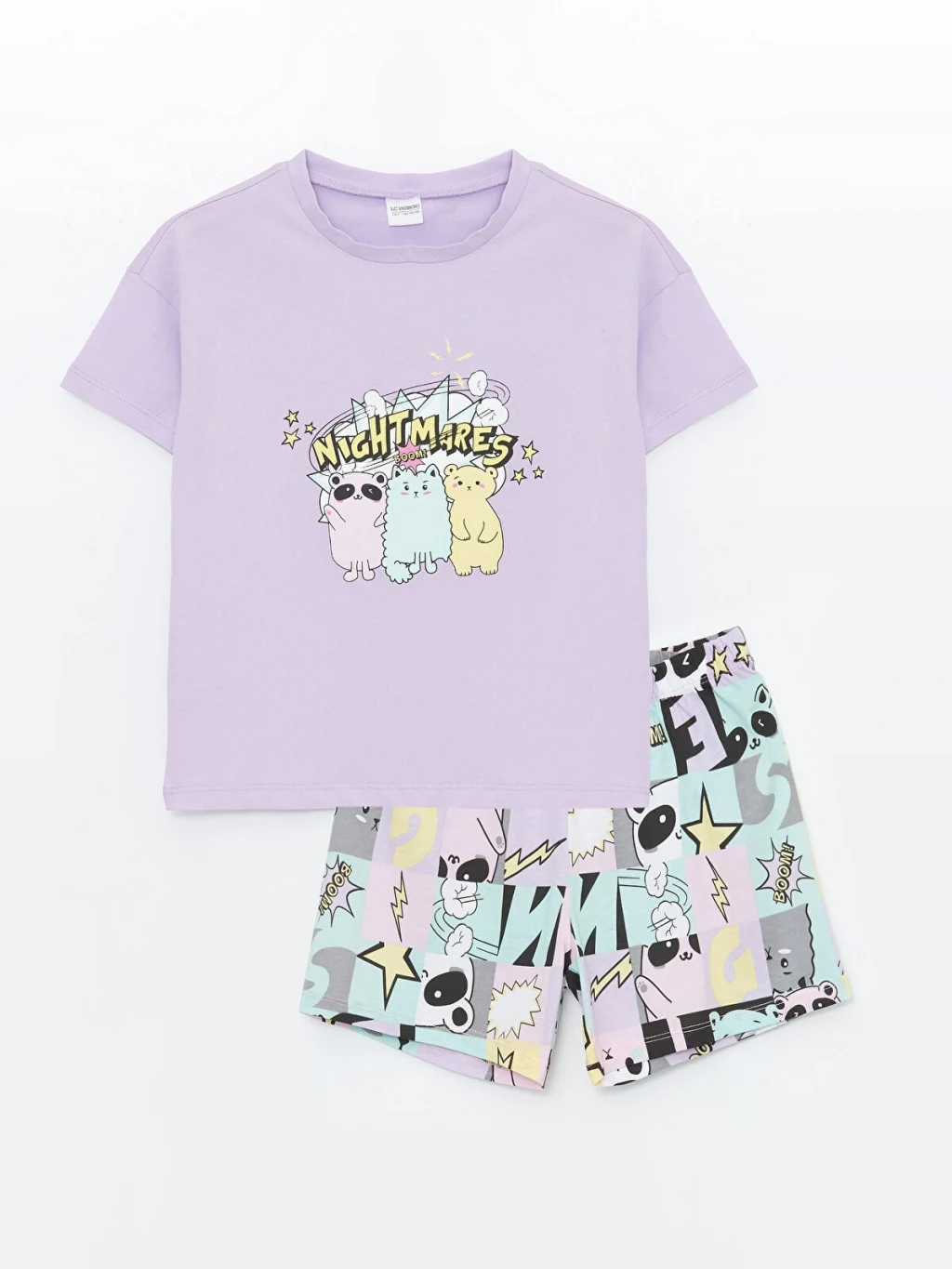 Rahat kalıp pijama üst ve standart kalıp pijama alt olarak 2 parçadan oluşan şortlu pijama takımı nefes alabilen penye kumaştan üretilmiştir.