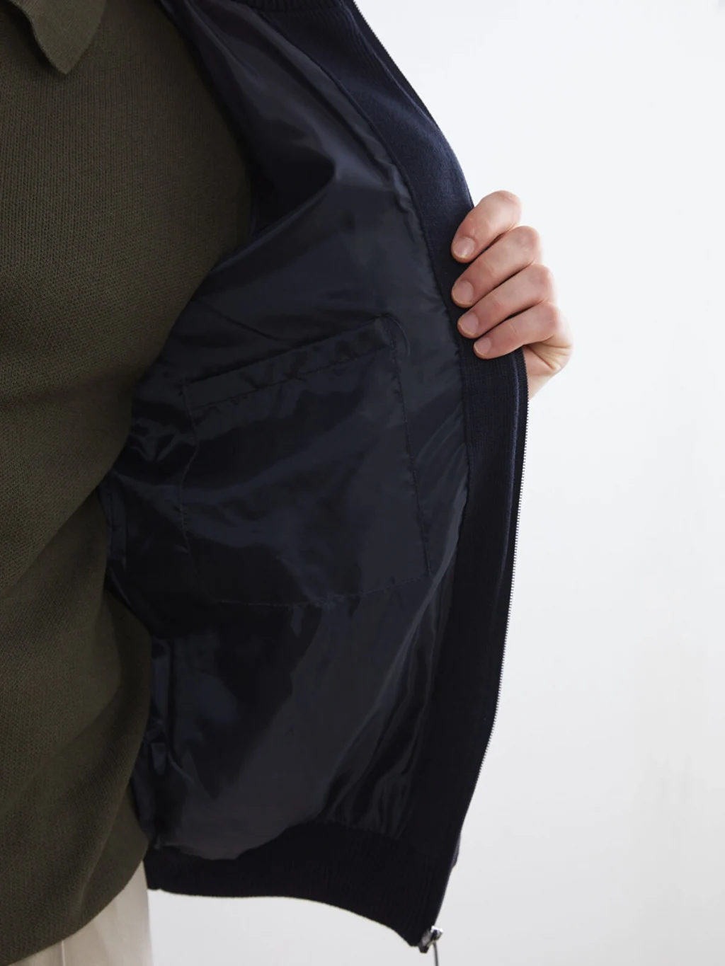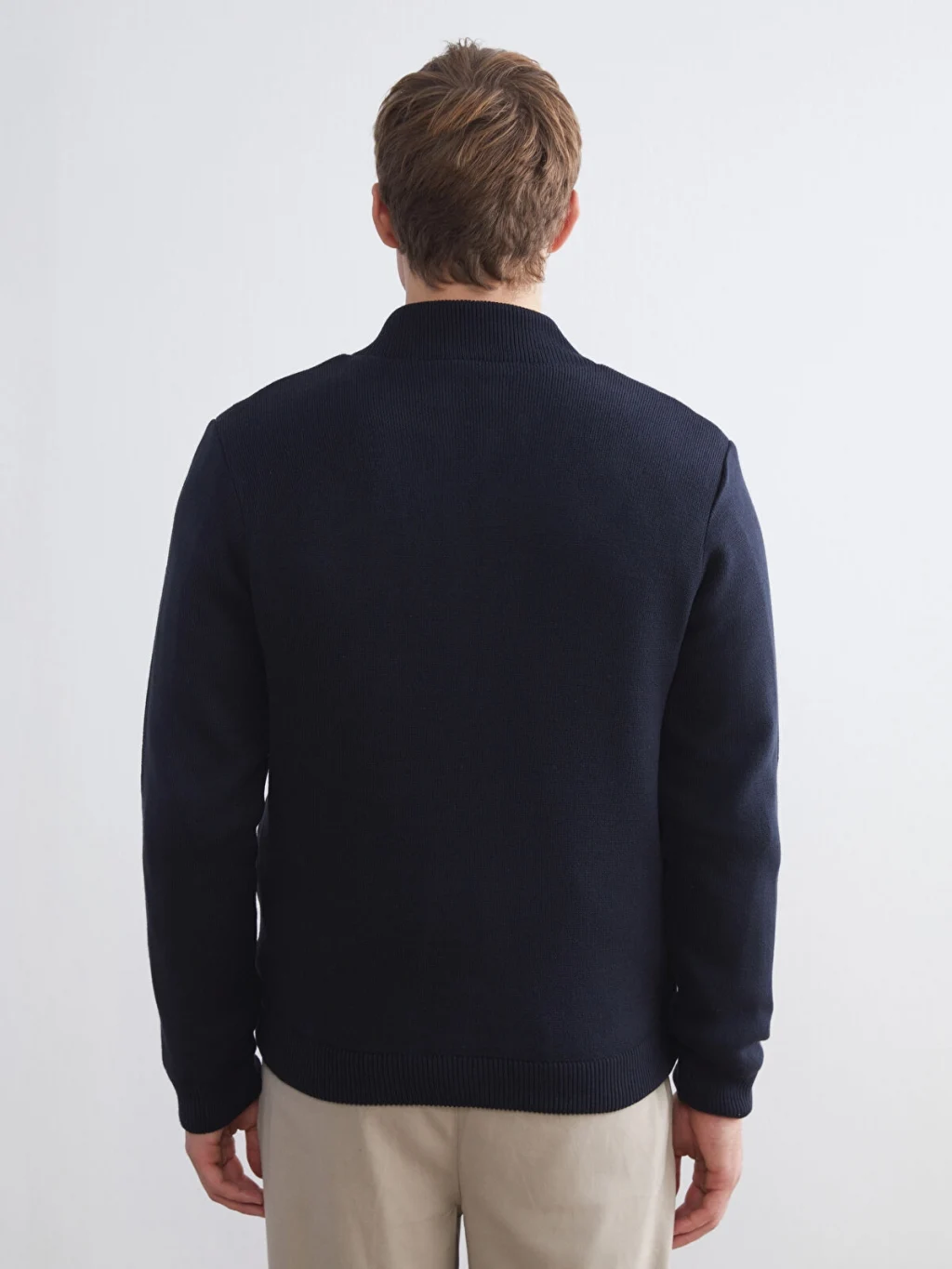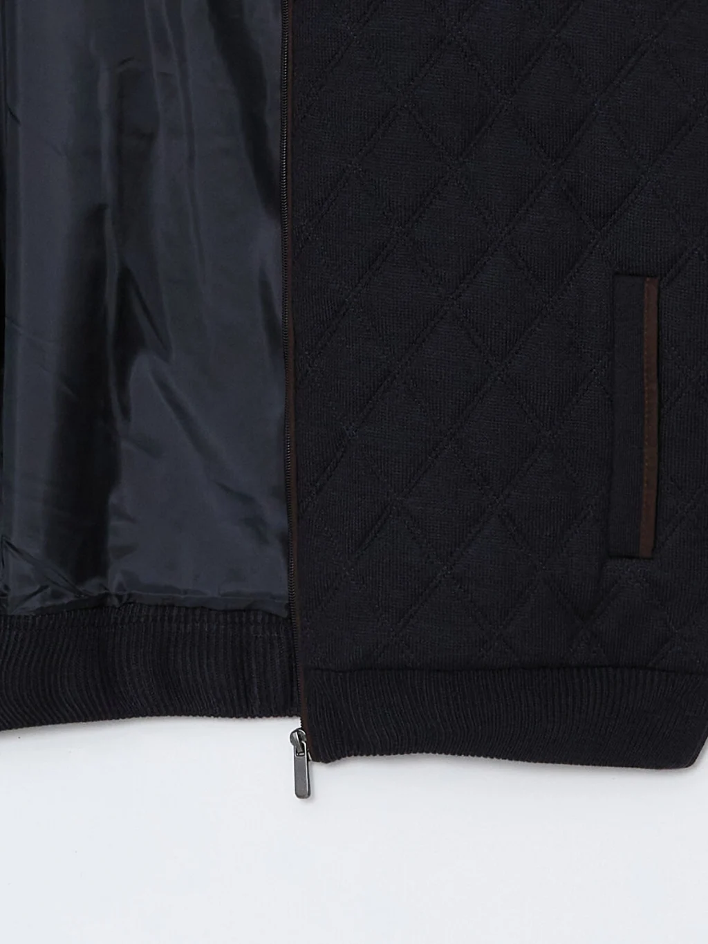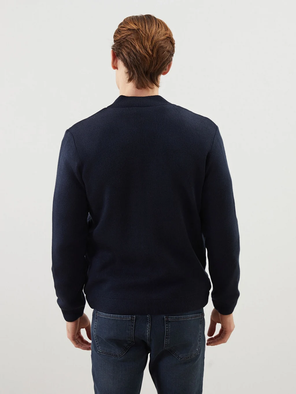 Bomber yakalı ve uzun kollu erkek hırka, ince triko kumaştan üretilmiştir. Kapitone desenli gövdesi önden fermuarlıdır ve iki adet yan cebi bulunur.