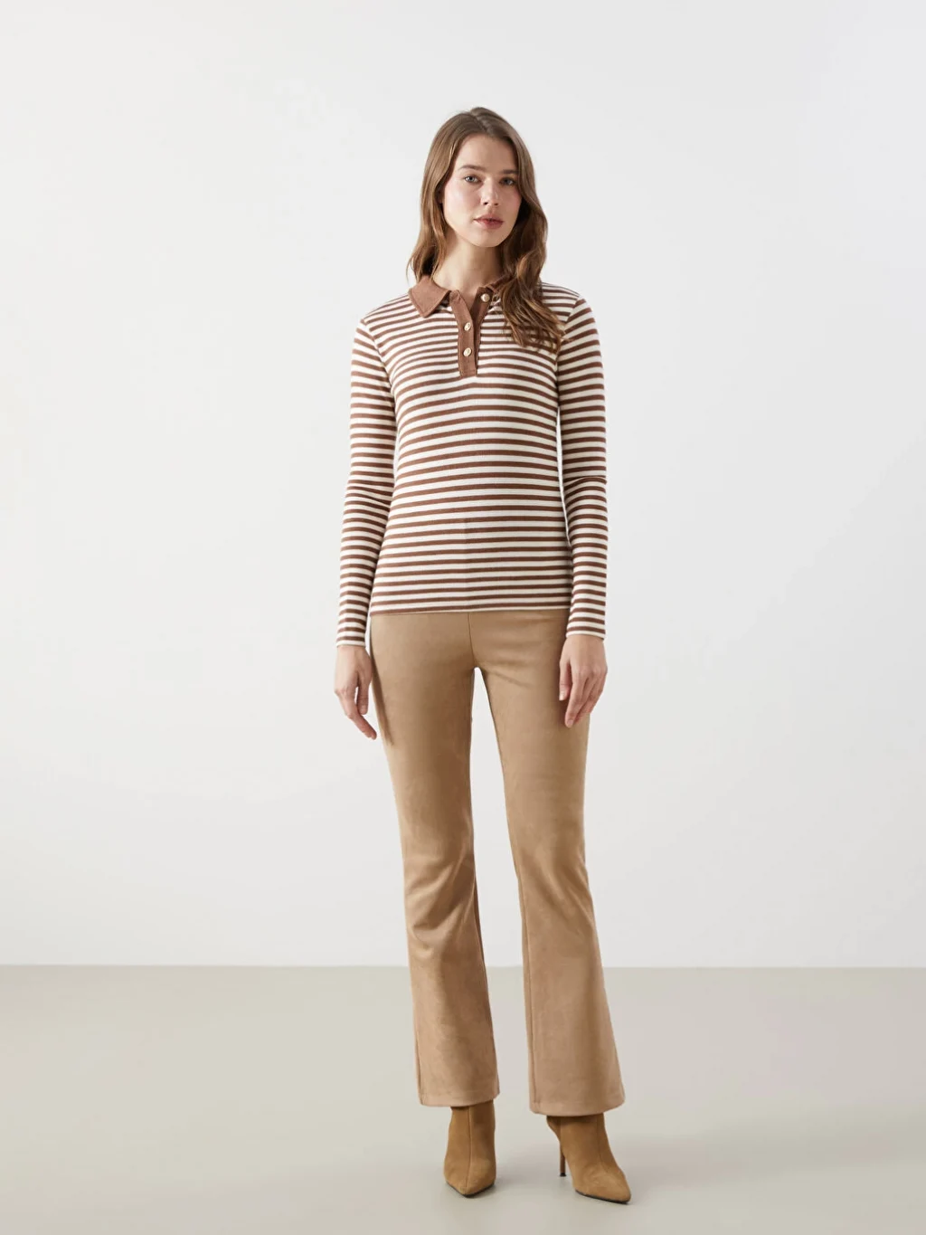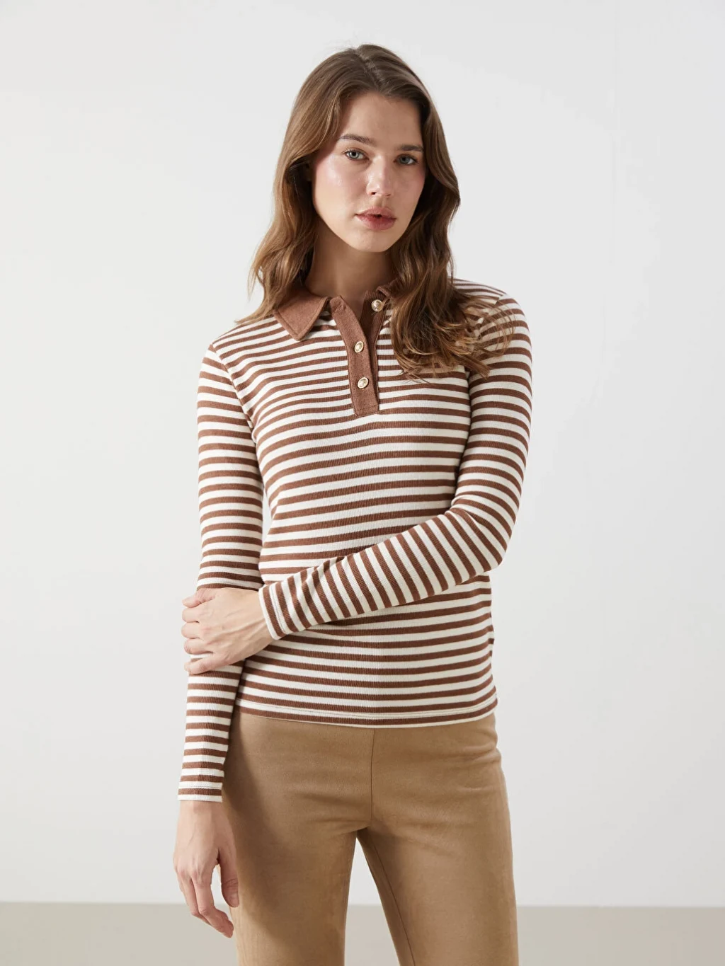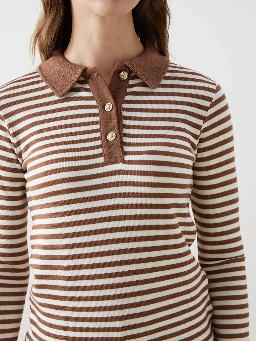 - Polo yaka çizgili uzun kollu body, kaşkorse kumaştan üretilmiştir. Bu sayede vücudu saran sıkı ve esnek bir yapısı bulunur. Yakası düğme kapamalı tasarımıyla kolay giyilir.