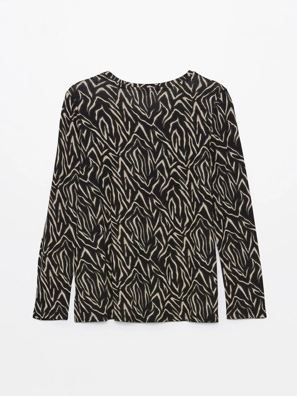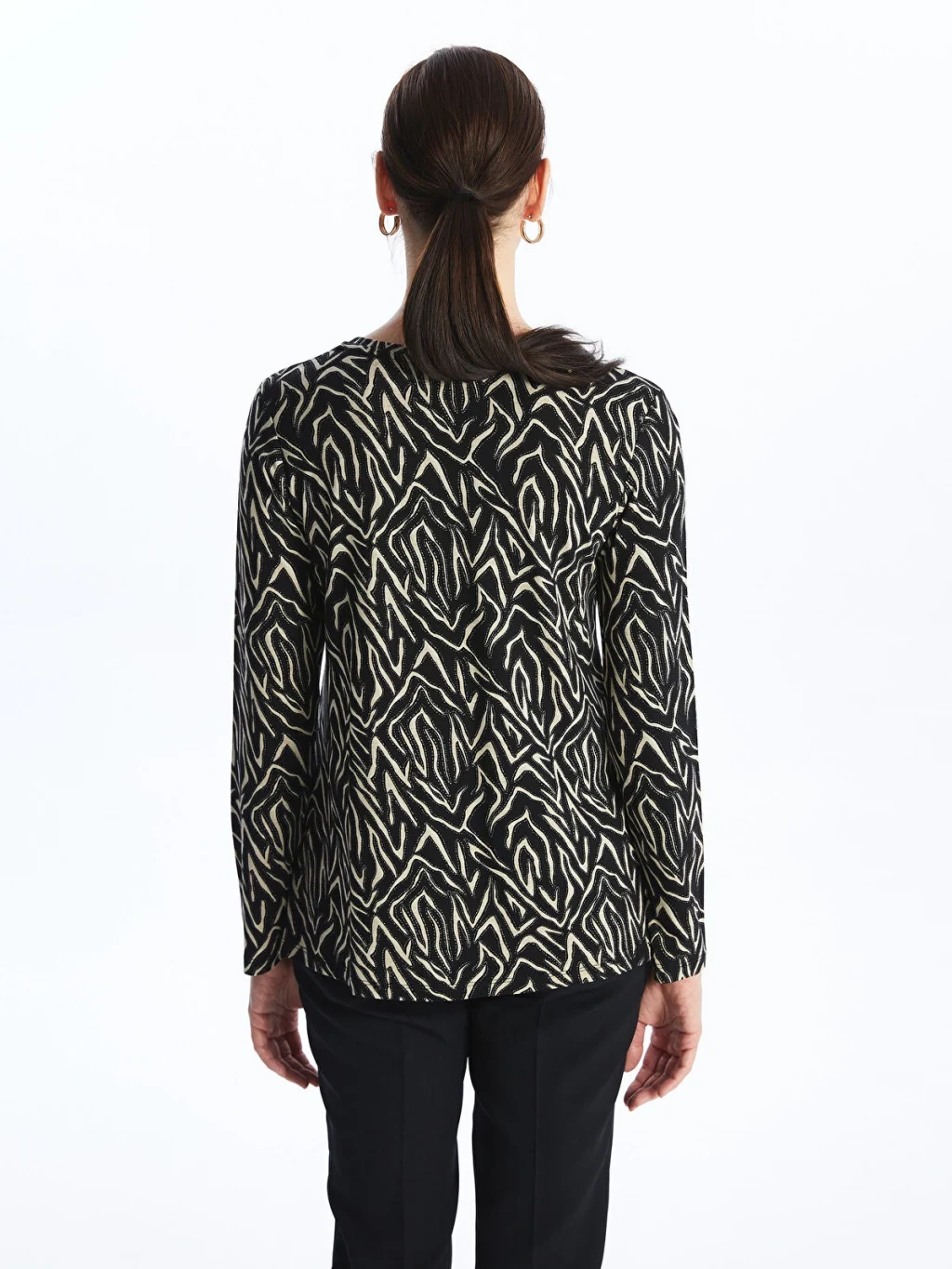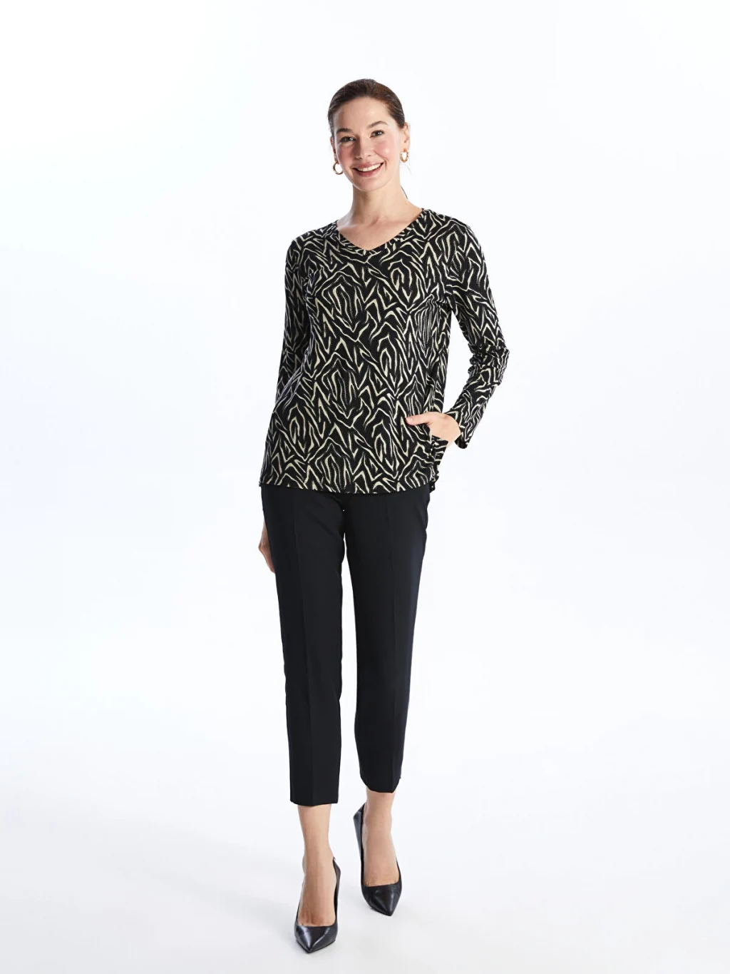 V yaka desenli uzun kollu kadın bluz, hafif ve yumuşak viskon karışımlı kumaştan üretilmiştir, gün boyu konfor ve rahatlık sağlar. Canlı ve şık deseni ile hem iş yerinde hem de sosyal etkinliklerde dikkat çeker.
