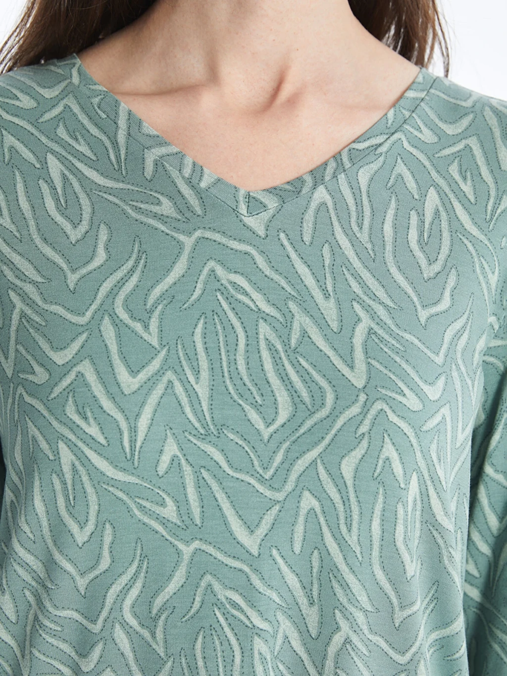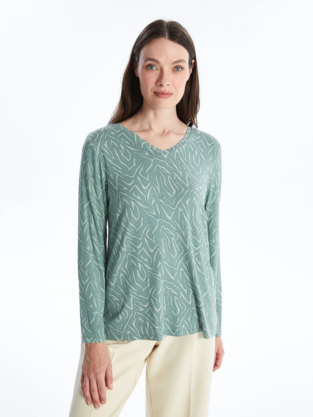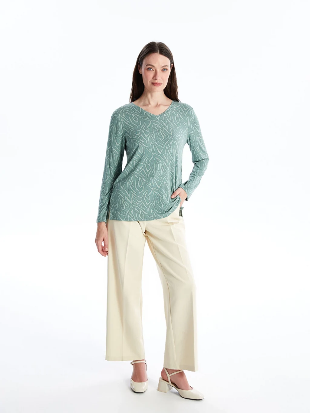 V yaka desenli uzun kollu kadın bluz, hafif ve yumuşak viskon karışımlı kumaştan üretilmiştir, gün boyu konfor ve rahatlık sağlar. Canlı ve şık deseni ile hem iş yerinde hem de sosyal etkinliklerde dikkat çeker.