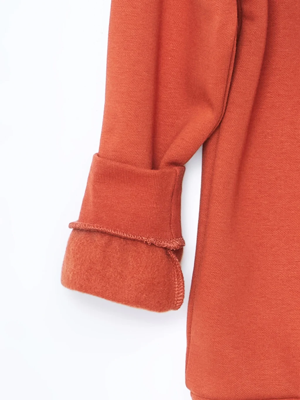 Bisiklet yaka ve uzun kollu erkek çocuk sweatshirt, kalın 3 iplik şardonlu kumaştan üretilmiştir. Kol uçları ve etek ucu ribanalıdır.