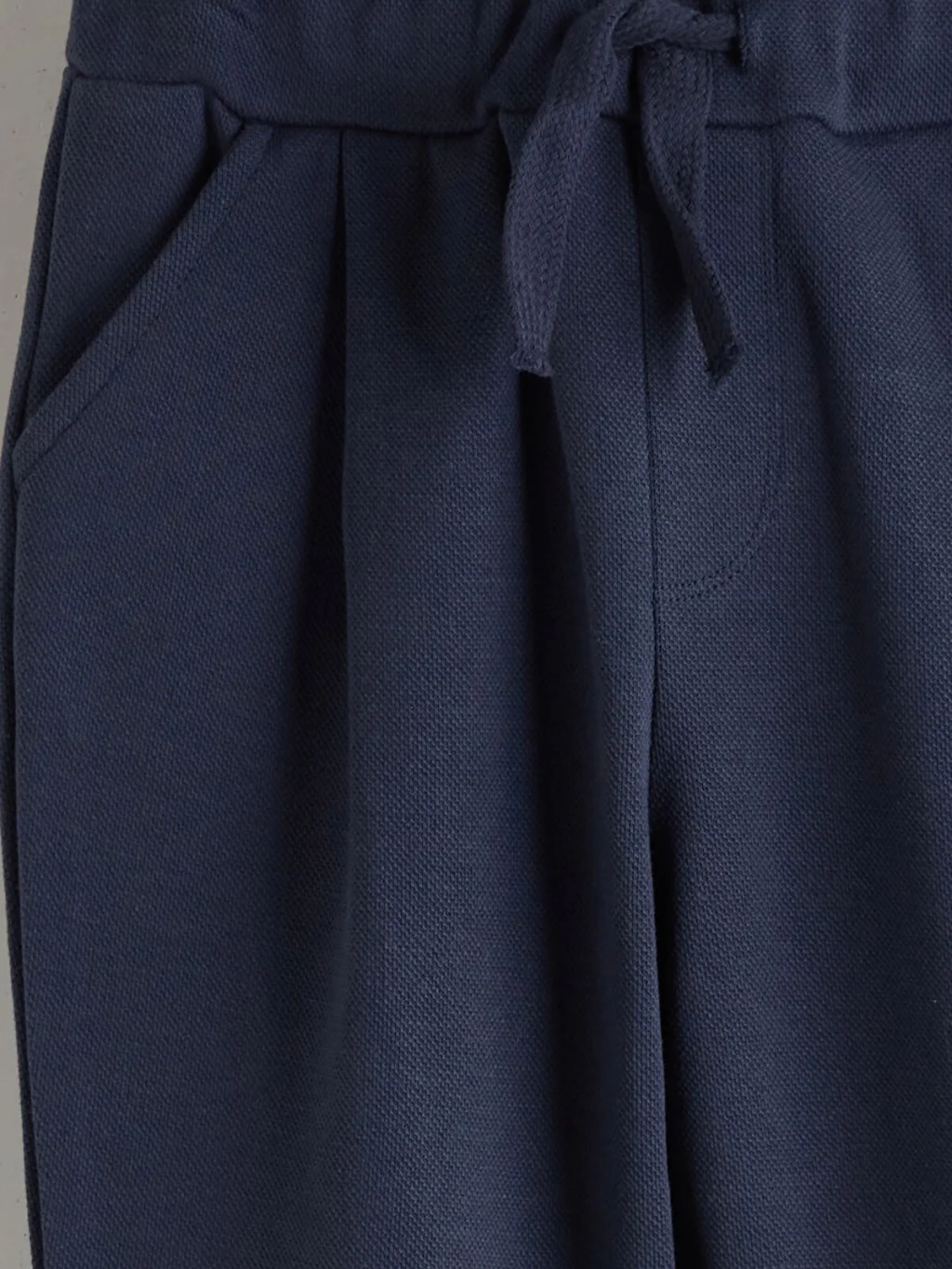 Erkek çocuk eşofman altı, pike kumaştan üretilmiştir. Beli bağcıklı ve iki yandan cepli tasarıma sahiptir.