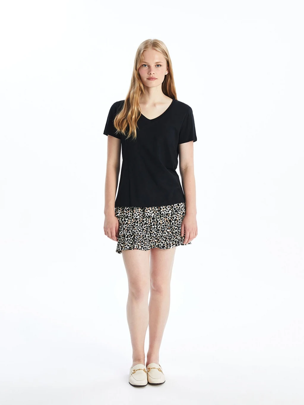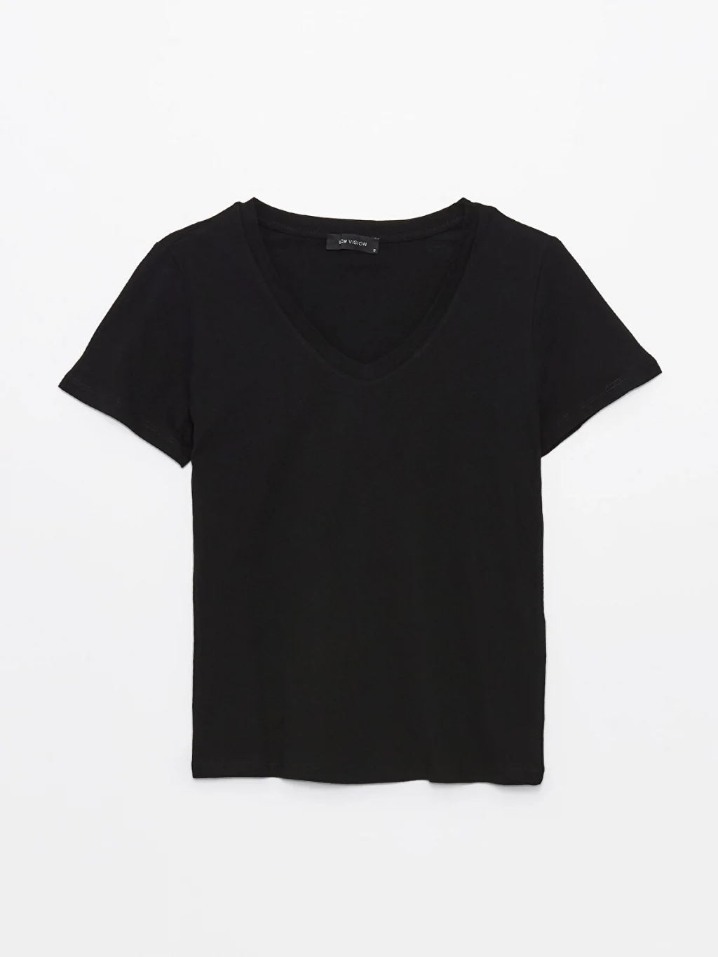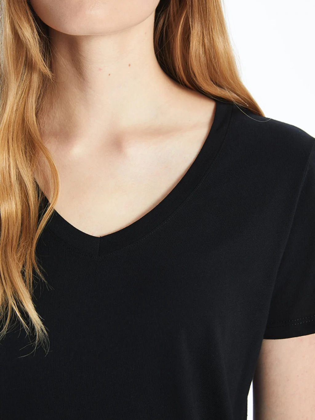 Kısa kollu kadın tişört, penye kumaşı sayesinde yumuşak bir dokunuş ve rahat bir kullanım deneyimi sunar. V yaka ve kısa kollu özellikleri, günlük kullanım için ideal olan bu tişörtü hem rahat hem de konforlu bir seçenek haline getirir.