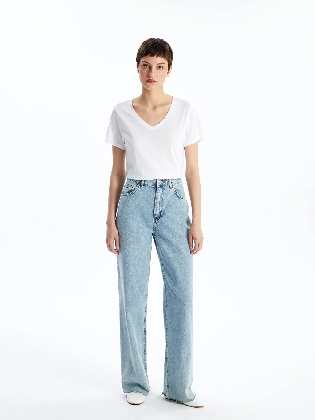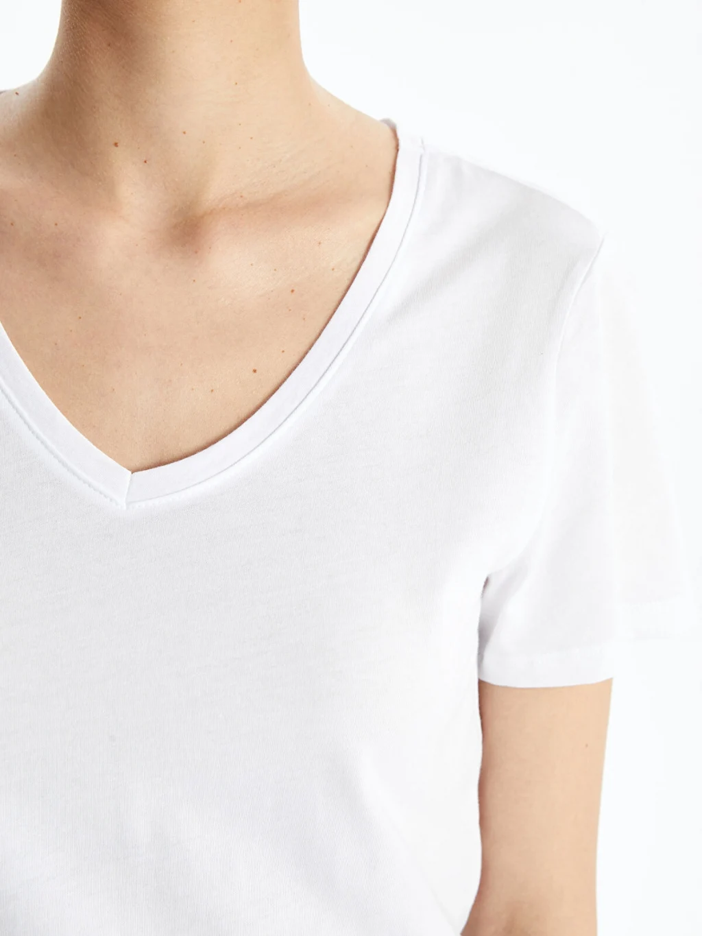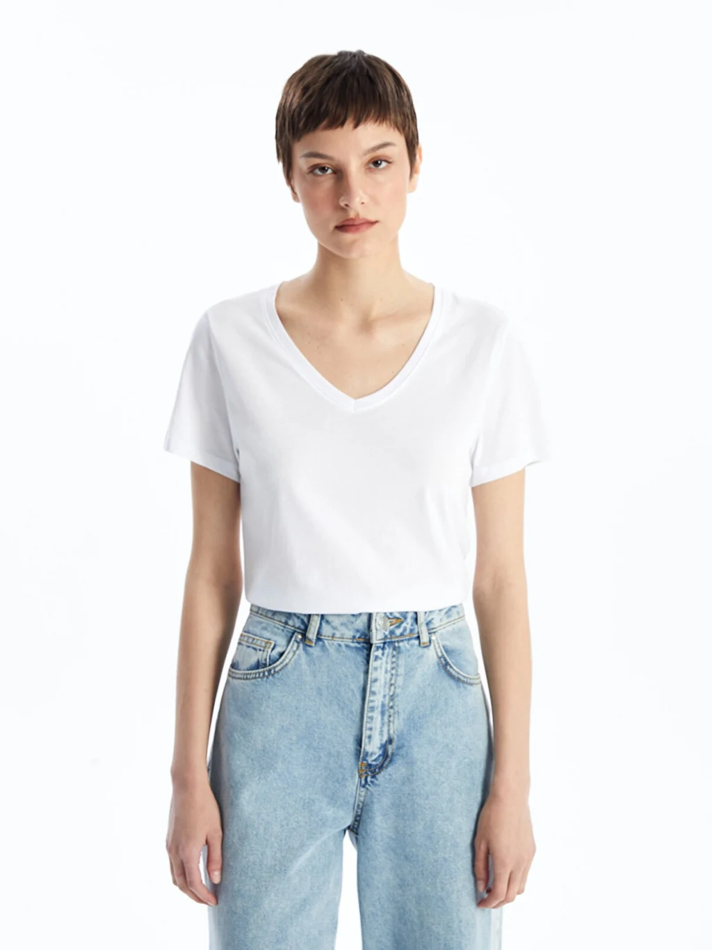 Kısa kollu kadın tişört, penye kumaşı sayesinde yumuşak bir dokunuş ve rahat bir kullanım deneyimi sunar. V yaka ve kısa kollu özellikleri, günlük kullanım için ideal olan bu tişörtü hem rahat hem de konforlu bir seçenek haline getirir.