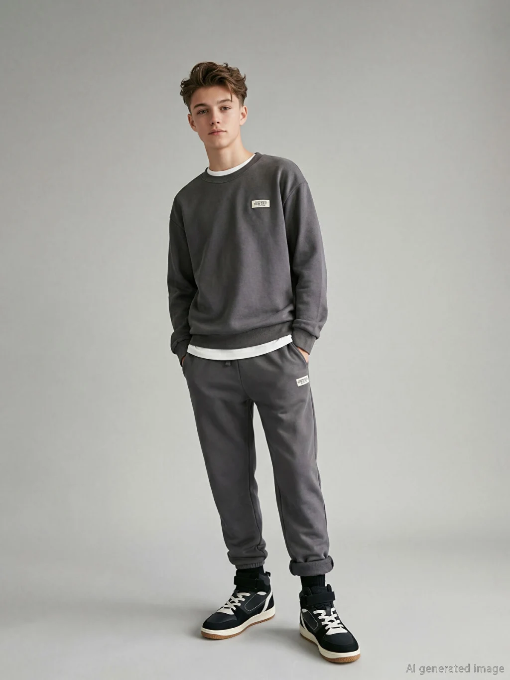 Erkek çocuk eşofman altı, beli lastikli ve ayarlanabilir bağcıklıdır. Paçaları lastikli tasarıma sahiptir.