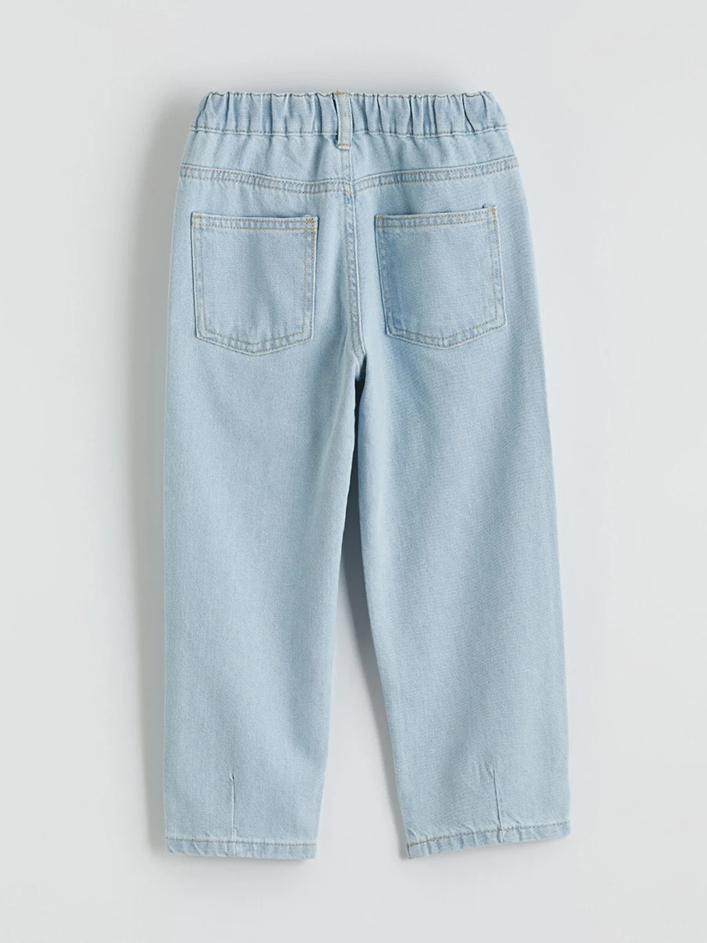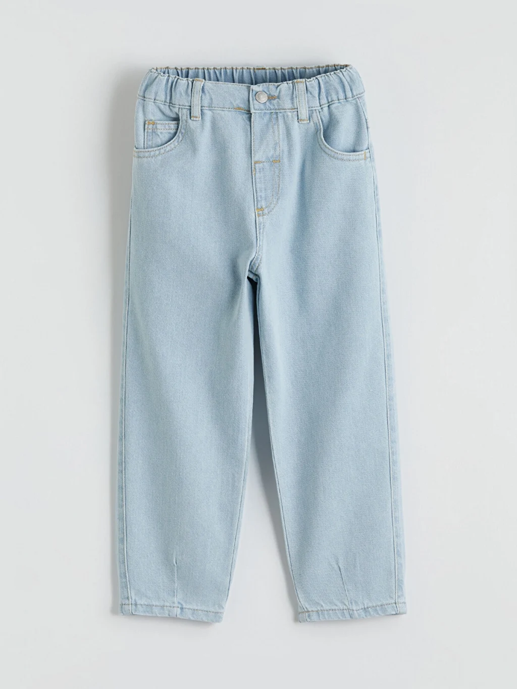 Beli lastikli erkek çocuk jean pantolon, %100 pamuklu denim kumaştan üretilmiştir. 5 cepli tasarıma sahiptir.