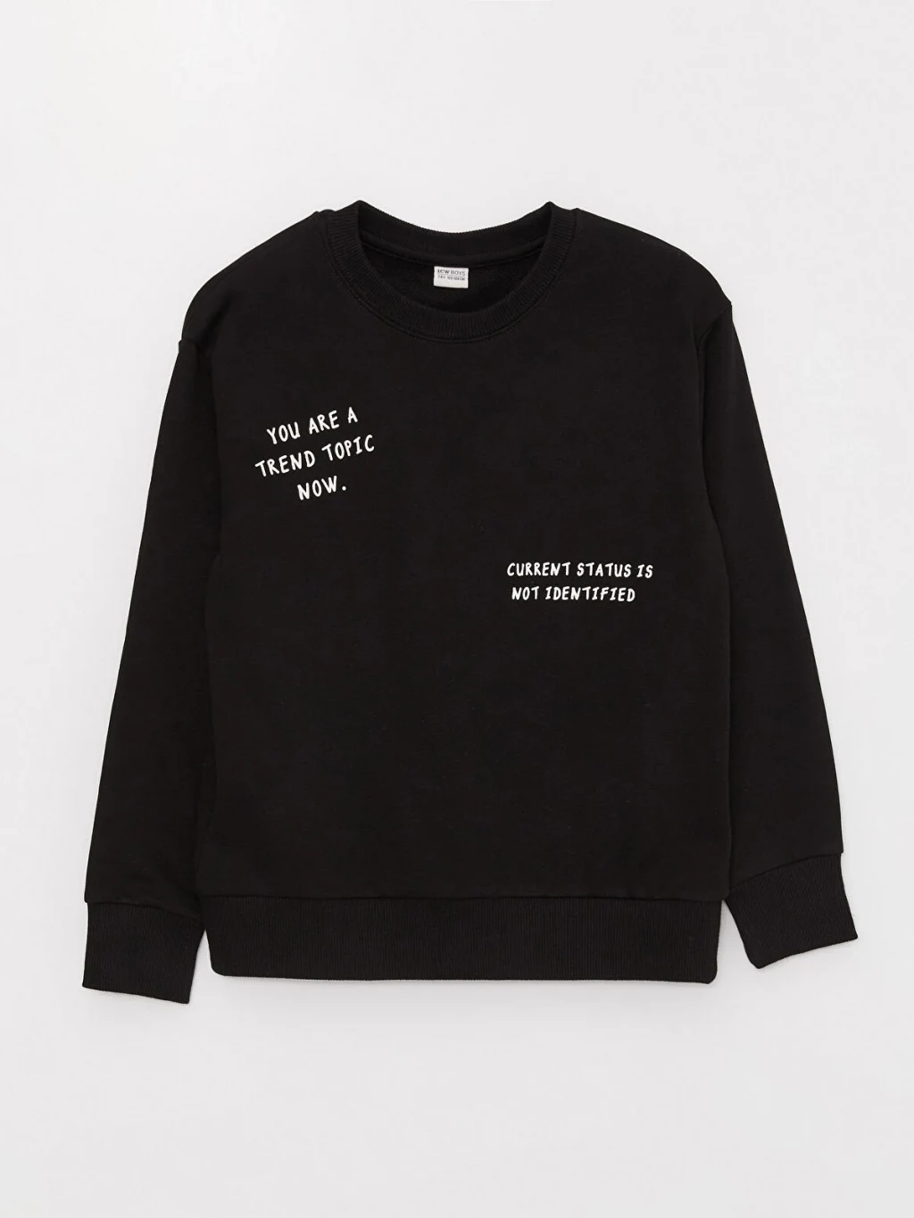 LCW Kids Lacivert Rahat Kalıp Bisiklet Yaka Baskılı Erkek Çocuk Sweatshirt