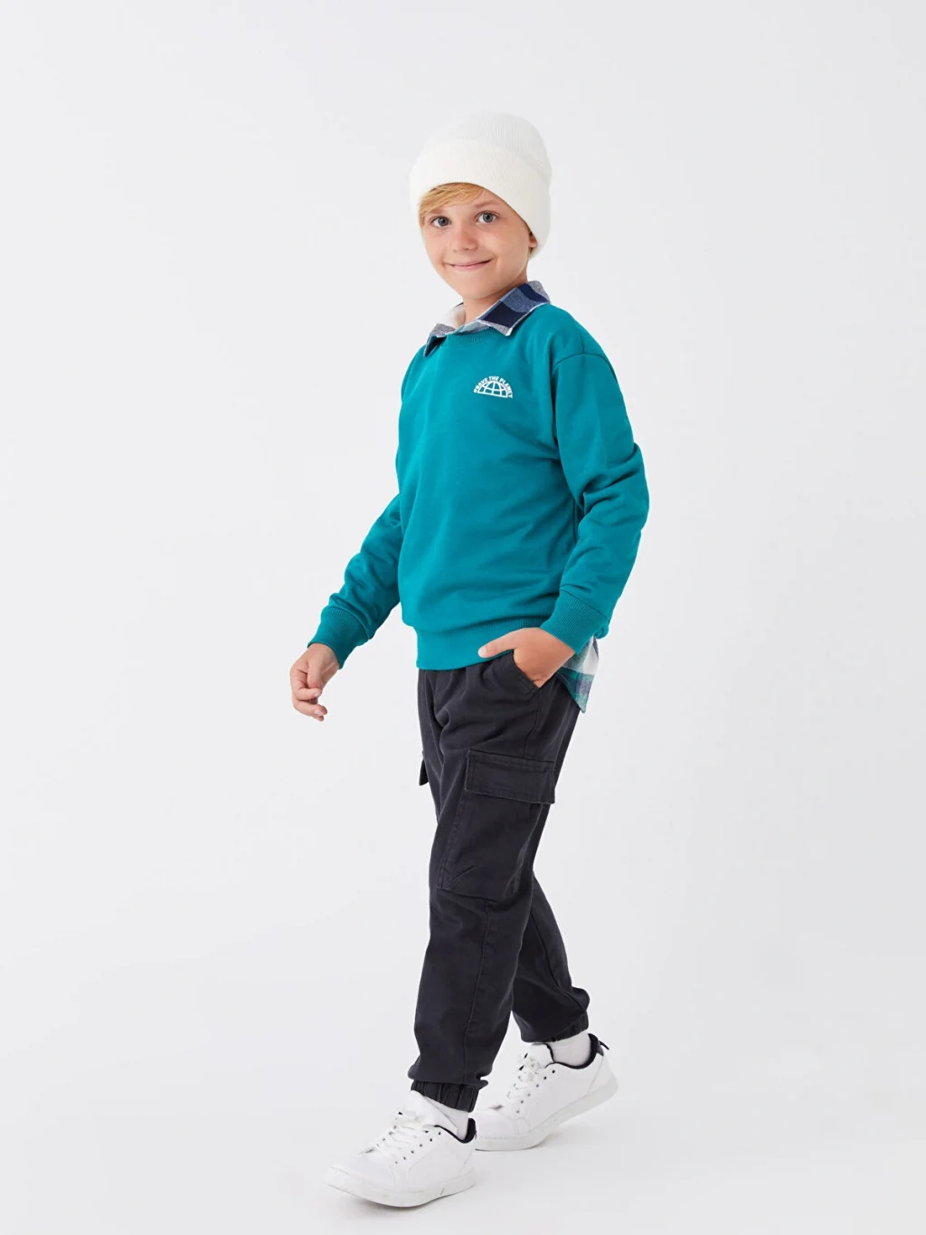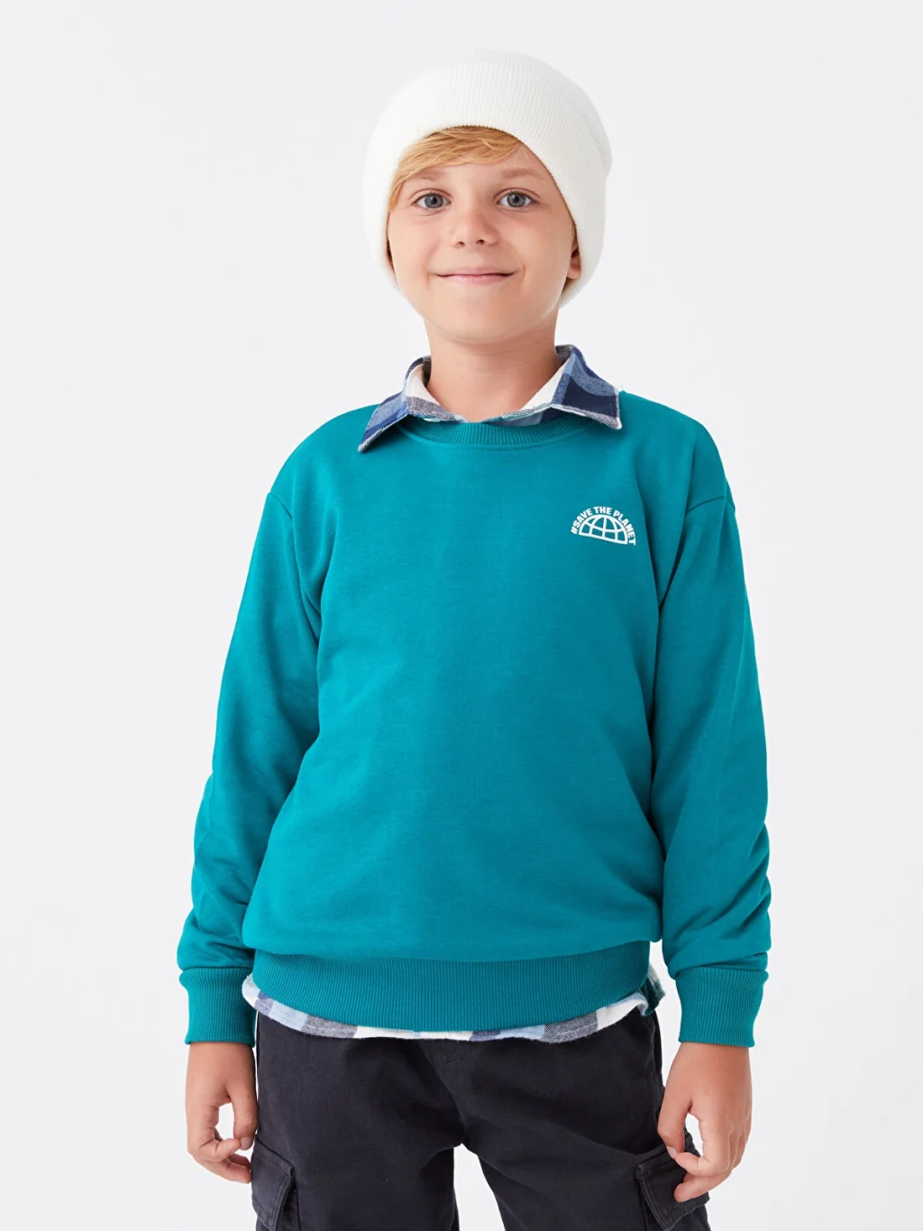 LCW Kids Lacivert Rahat Kalıp Bisiklet Yaka Baskılı Erkek Çocuk Sweatshirt