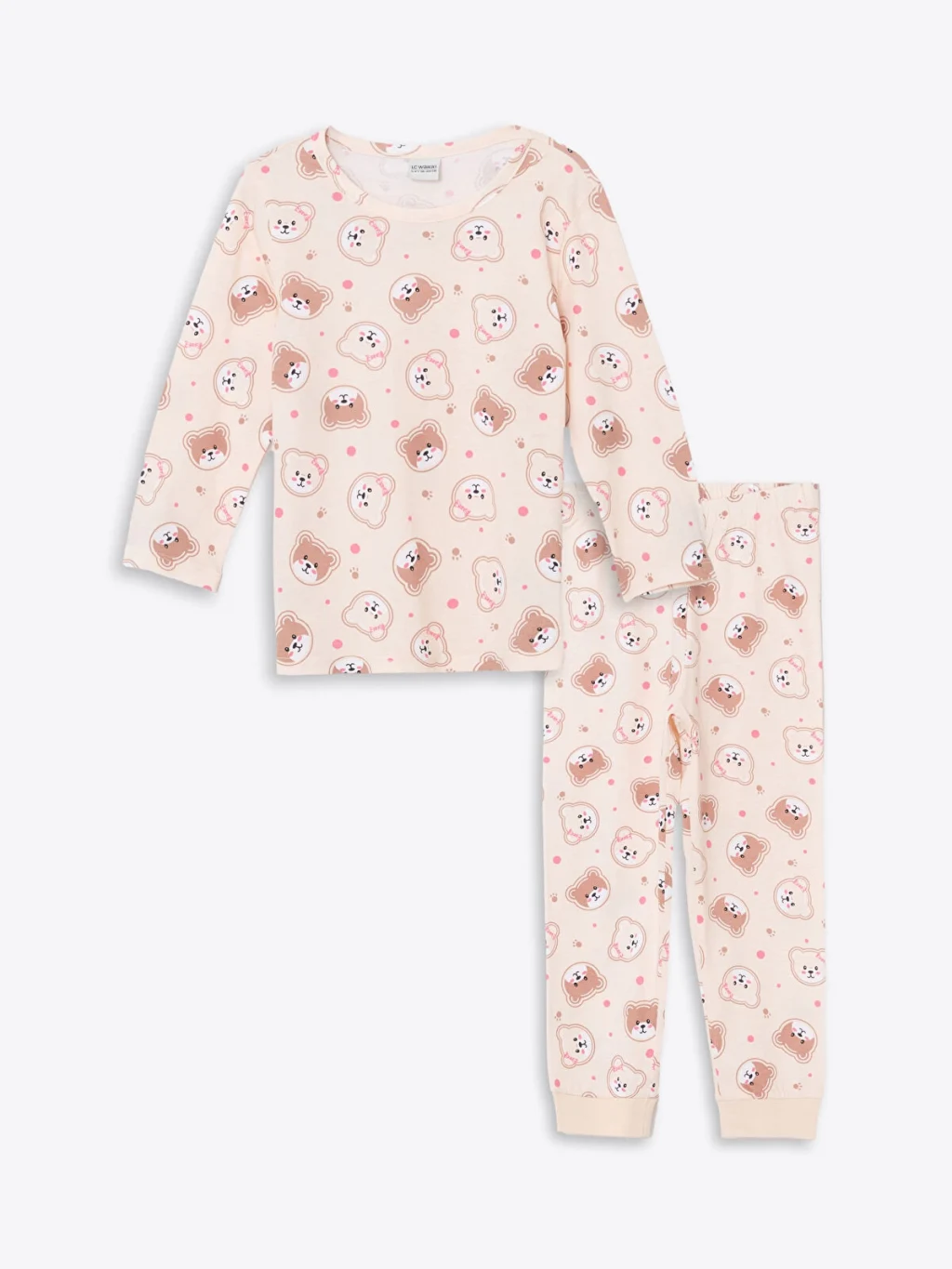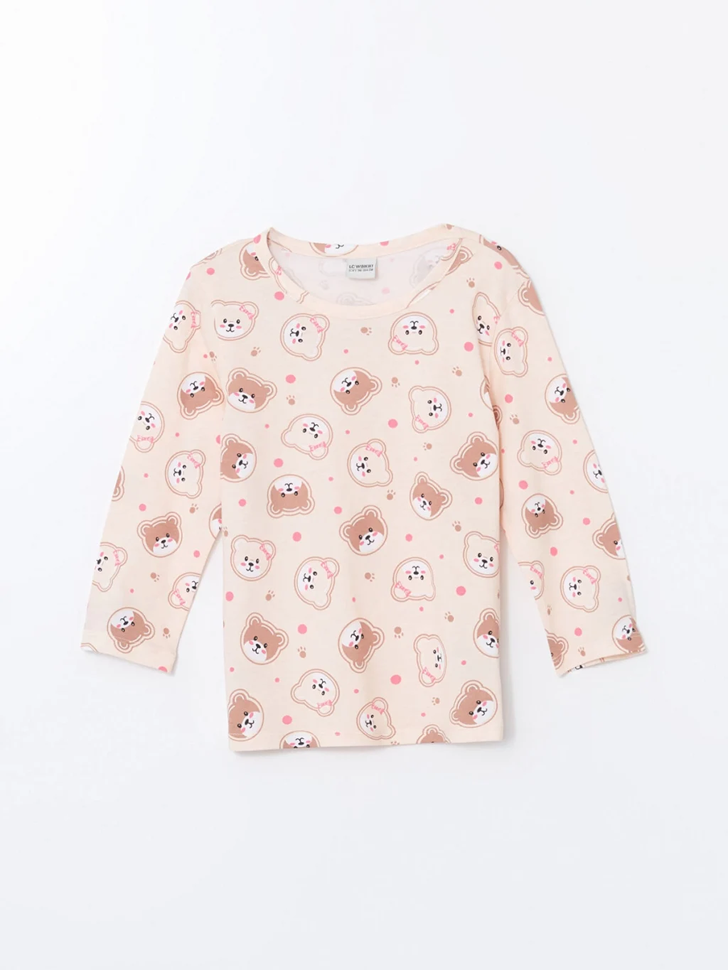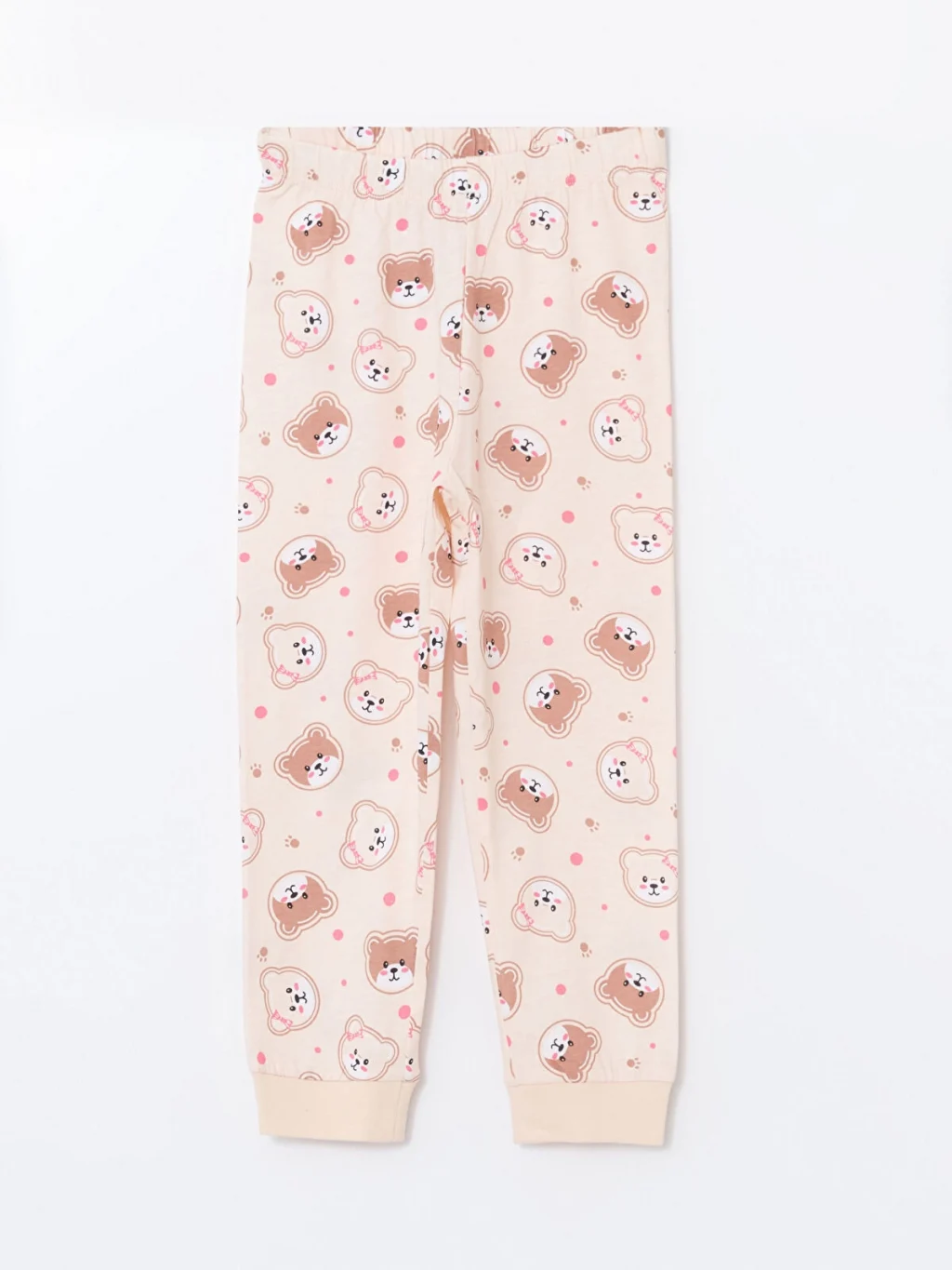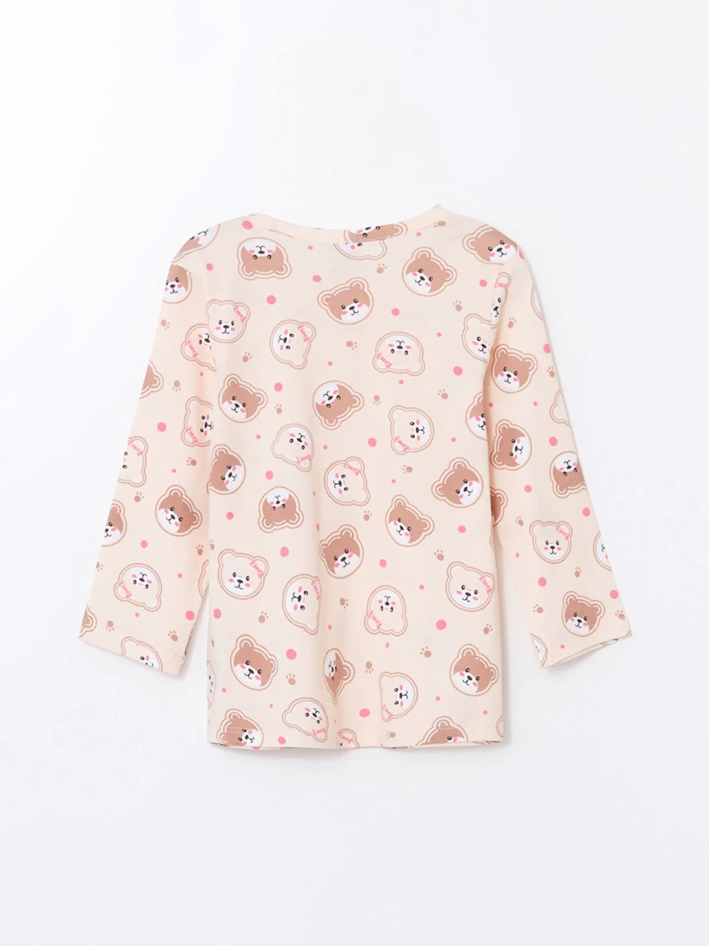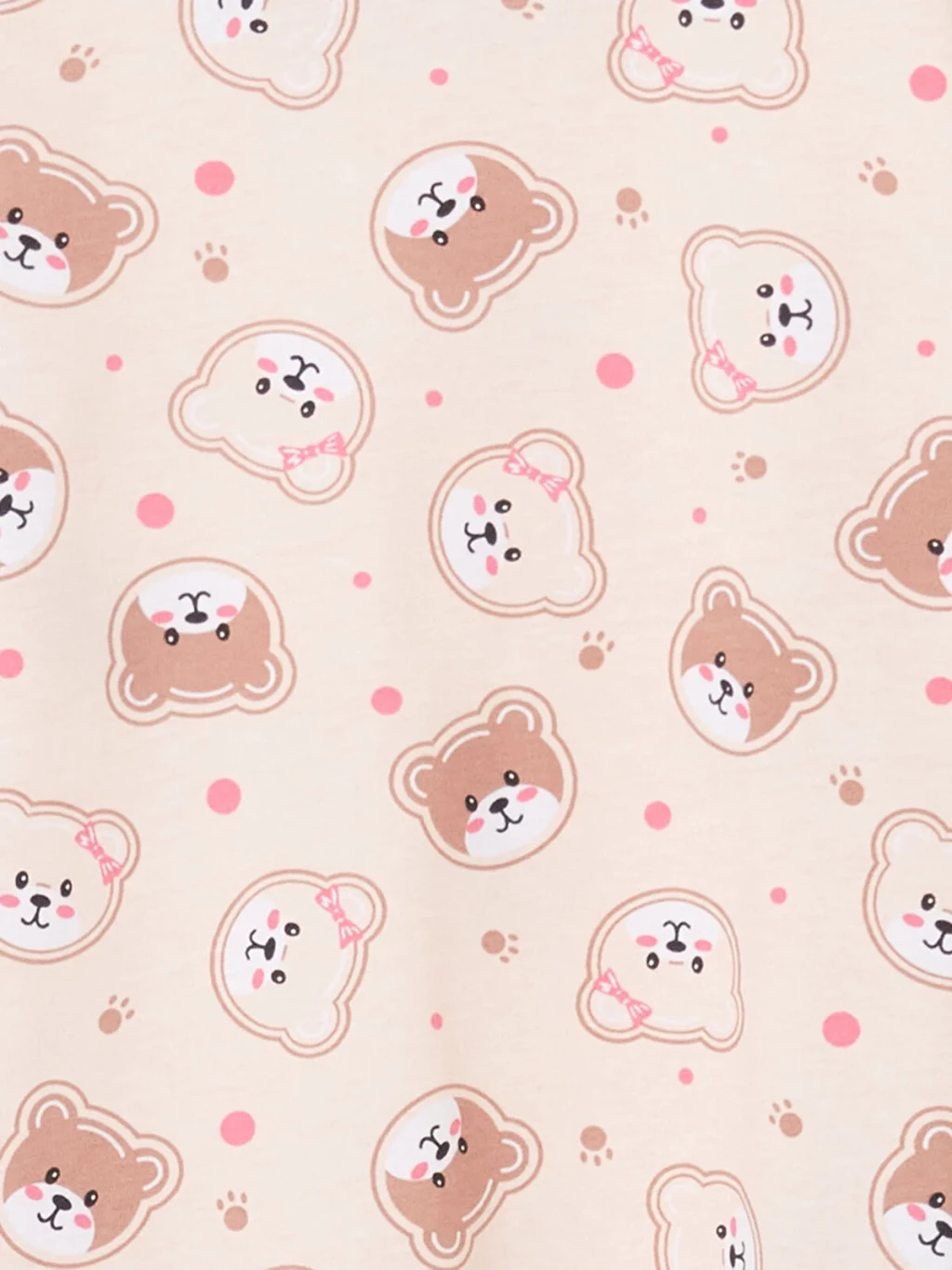 Yumuşak %100 pamuklu kumaştan üretilen ayı baskılı bisiklet yaka kız bebek pijama takımı, miniklere gece boyunca rahat ve huzurlu bir uyku deneyimi sunar.