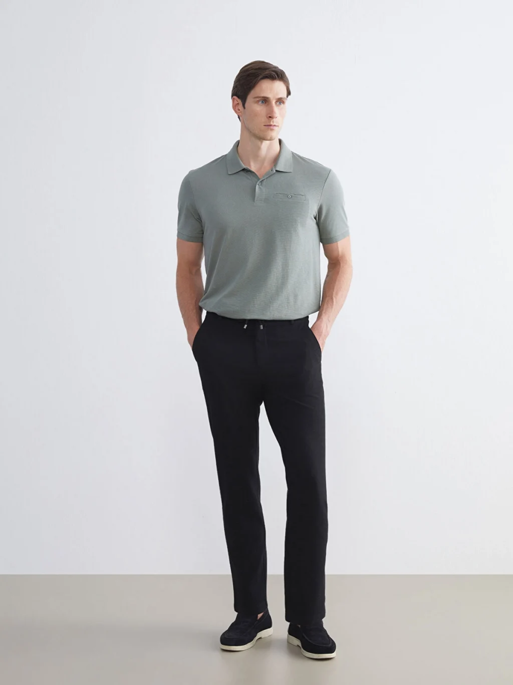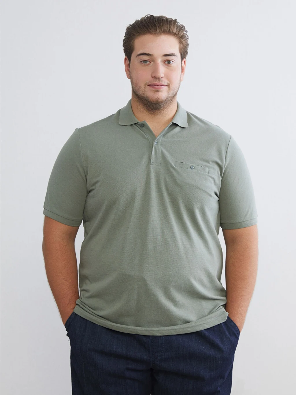 Polo yaka ve kısa kollu olarak tasarlanan erkek tişört, düz tasarımlı, pike dokulu kumaştan üretilmiştir.