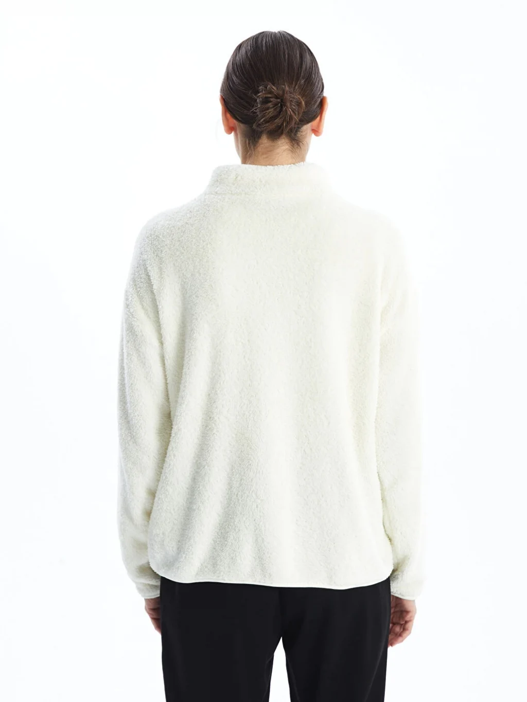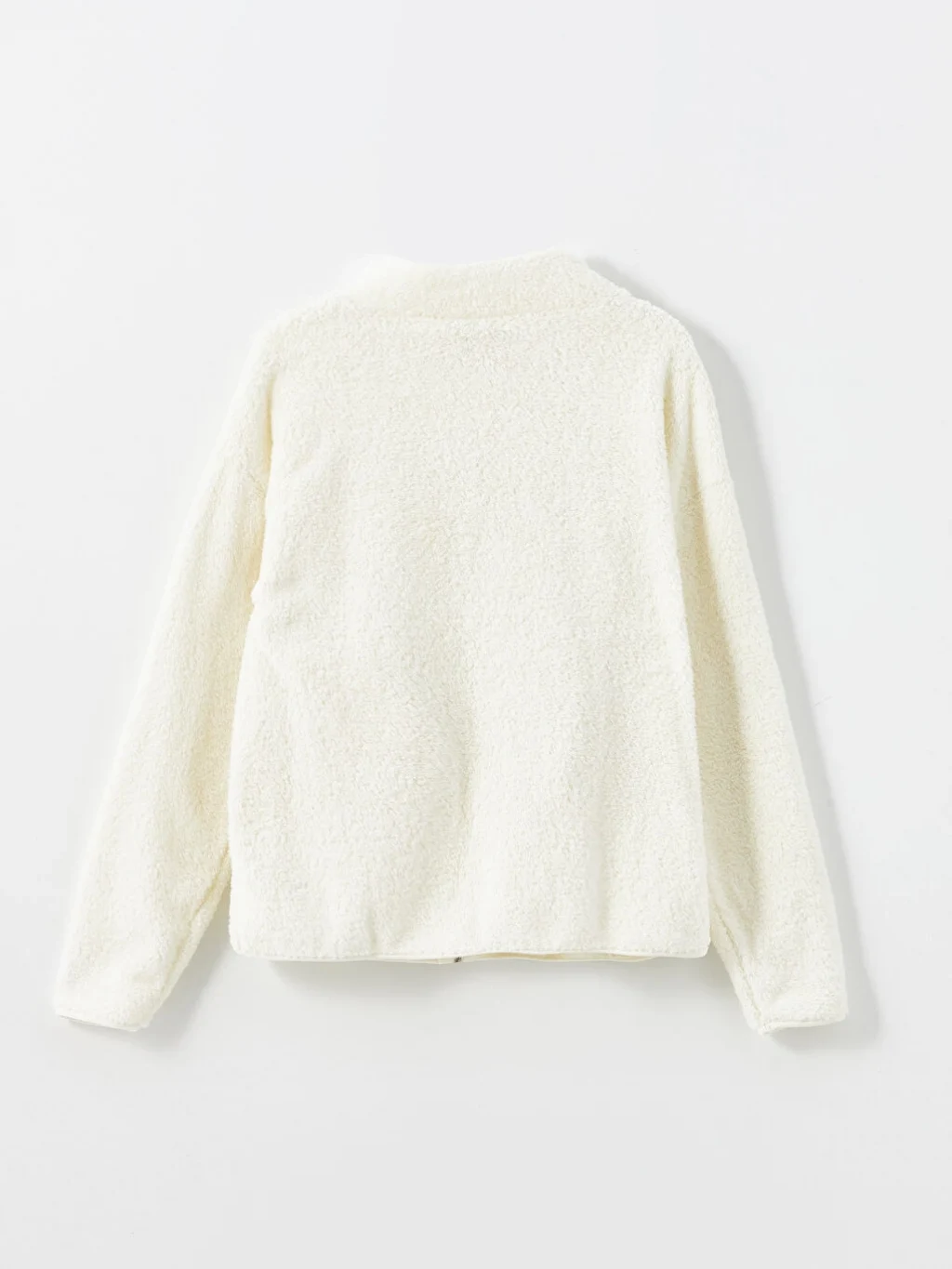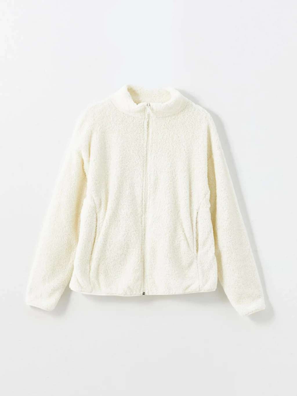 Dik yaka düz uzun kollu pelüş hırka, önden fermuar kapaması ile giyinme kolaylığı sunar. Yumuşacık pelüş kumaşıyla ile soğuk günlerde sizi sıcak tutar. Küçük eşyalarınızı taşıyabilmeniz için iki yandan cepli olarak tasarlamıştır.