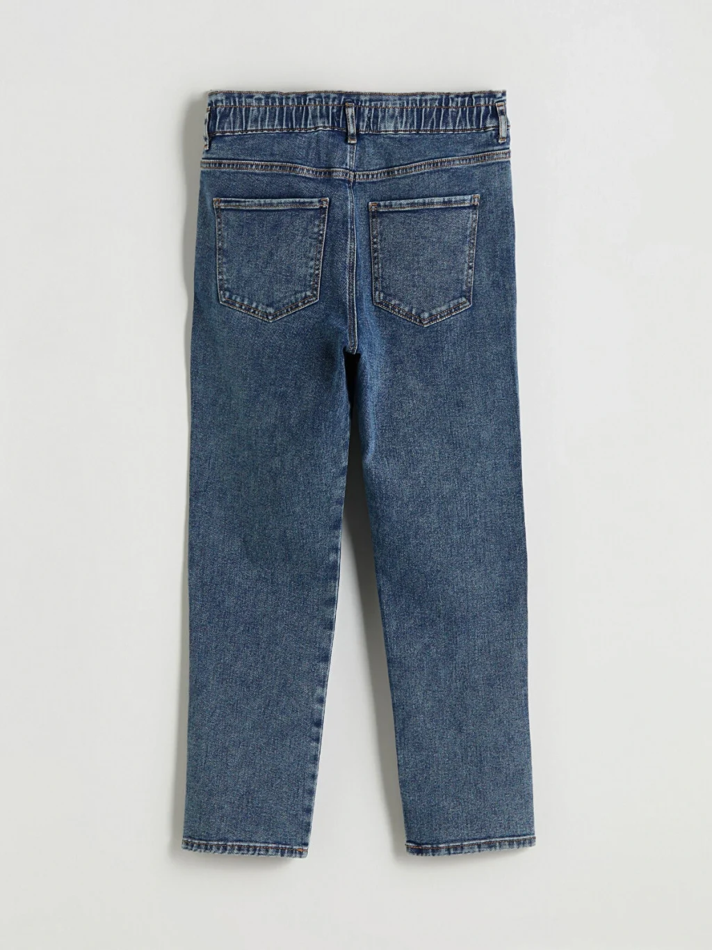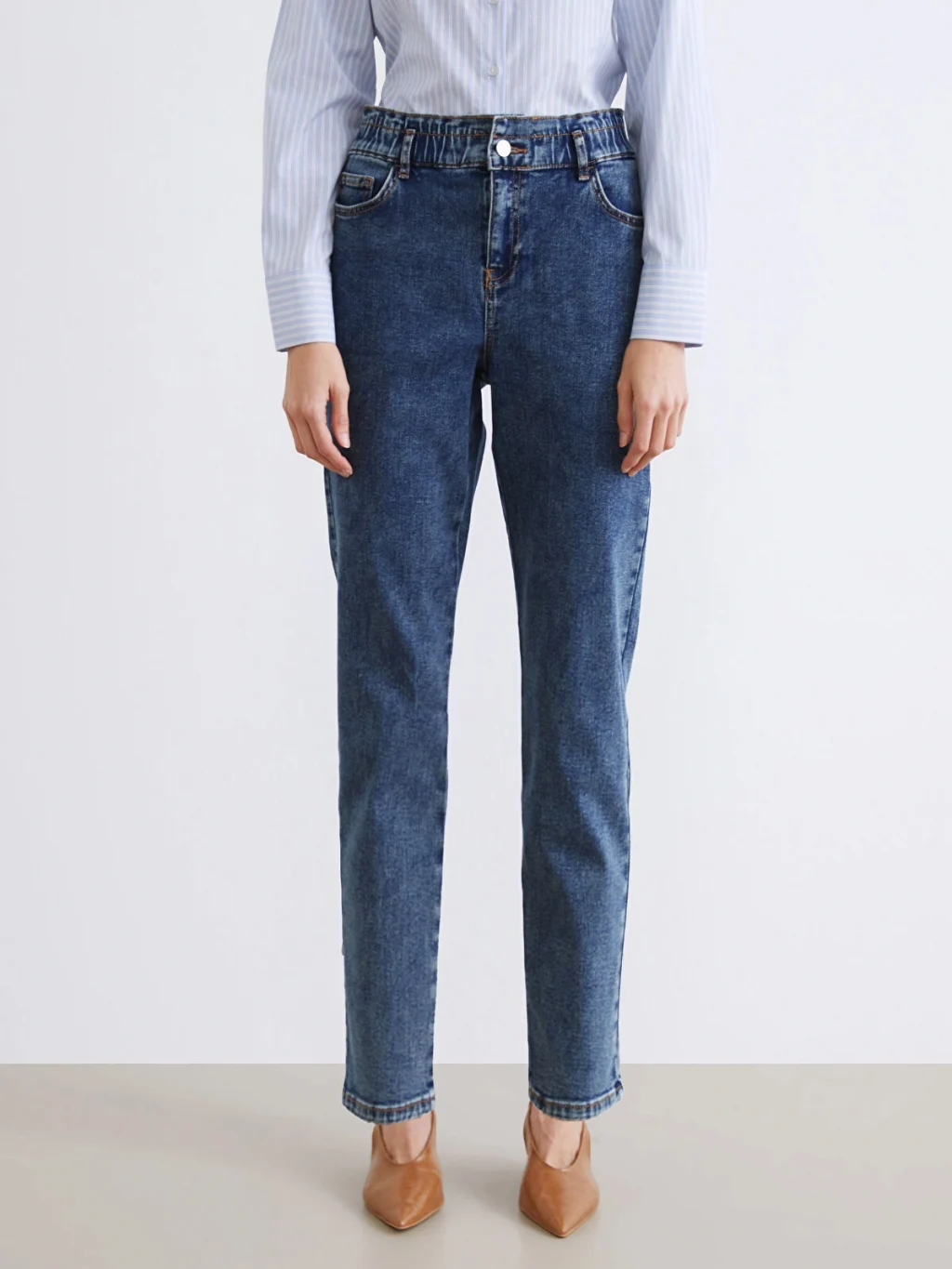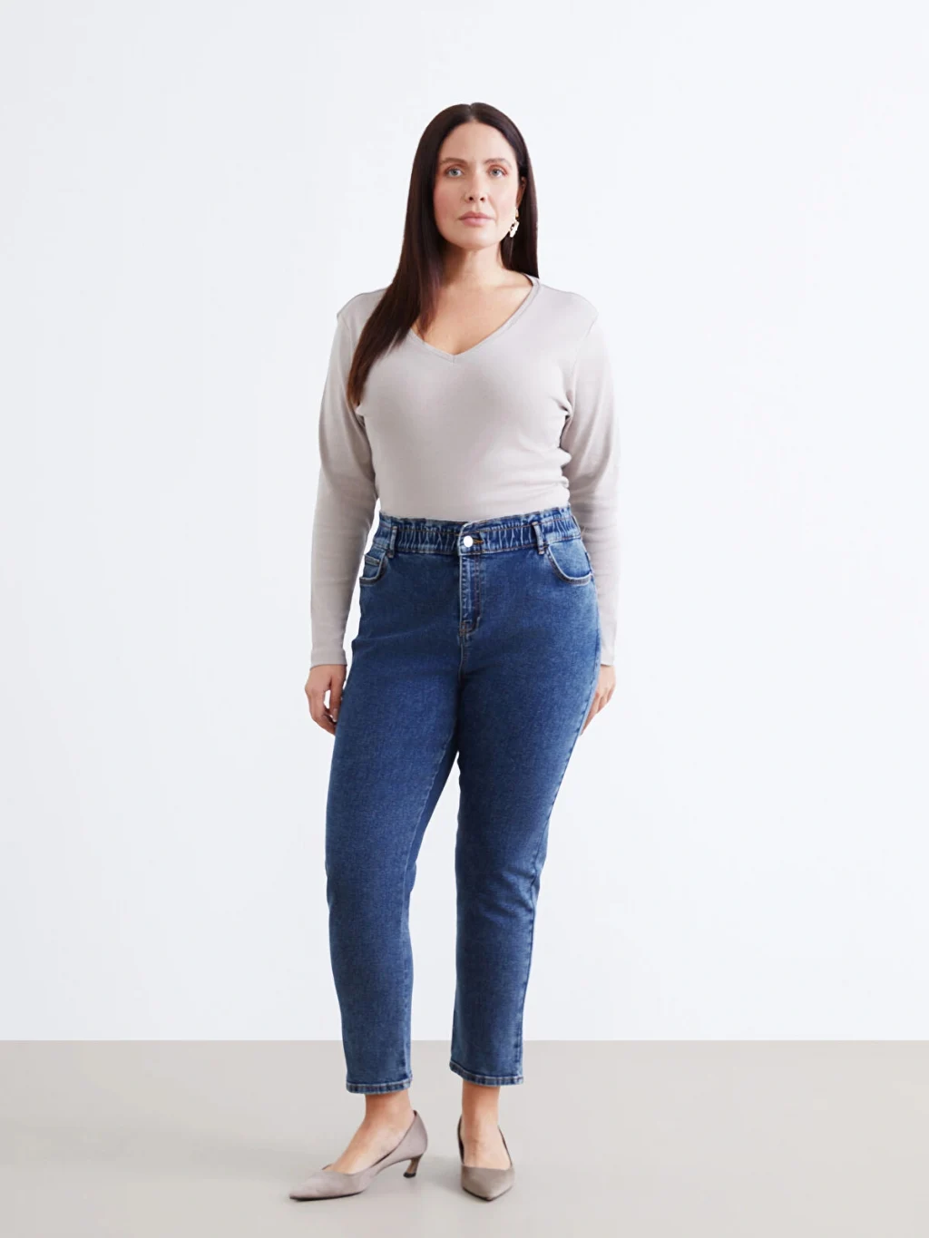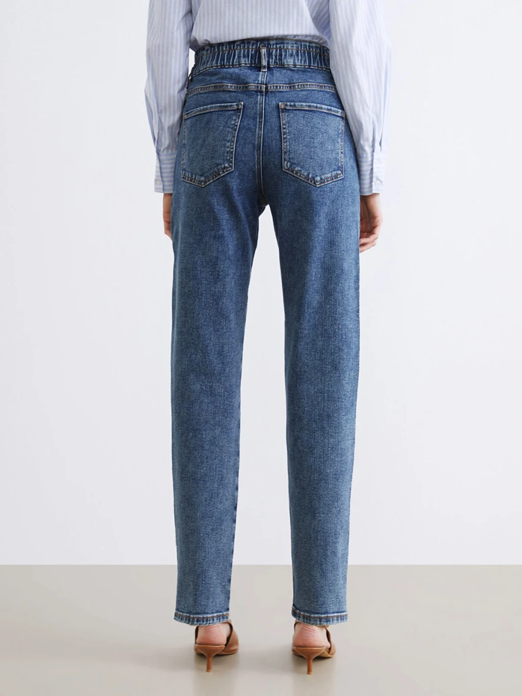 Slim mom fit; belden bileğe kadar daralarak inen bilek boy bir kesime sahiptir. Tasarımı 90'lar denim görüntüsünün günümüze uyarlanmış şeklidir. Esnek kumaş yapısı ile gün boyu rahatlık ve hareket özgürlüğü sağlar.